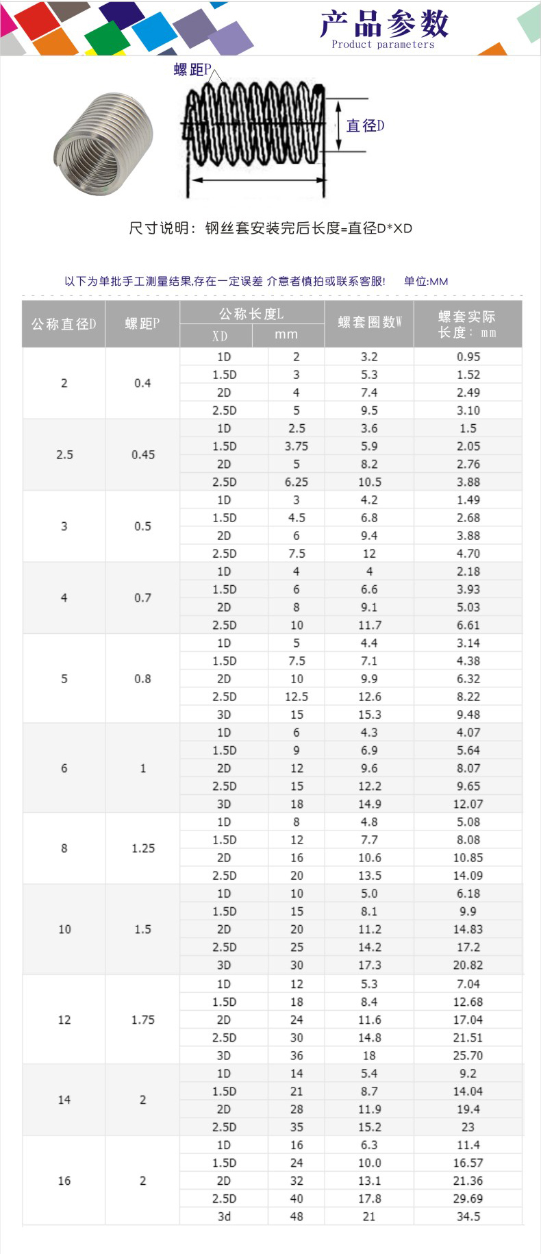 Easy 304 stainless steel wire thread insert/wire brace/thread protective sleeve M2M2.5M3M4M5M6M8M10-M16 M5*0.8*2D (10 pieces)