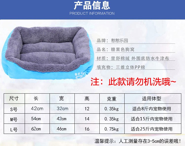 Hanhan Paradise Dog House Winter Warm Pet Cat House Mat Dog Sleeping Mat Small and Medium-sized Dog Teddy Golden Retriever Winter Dog Bedding