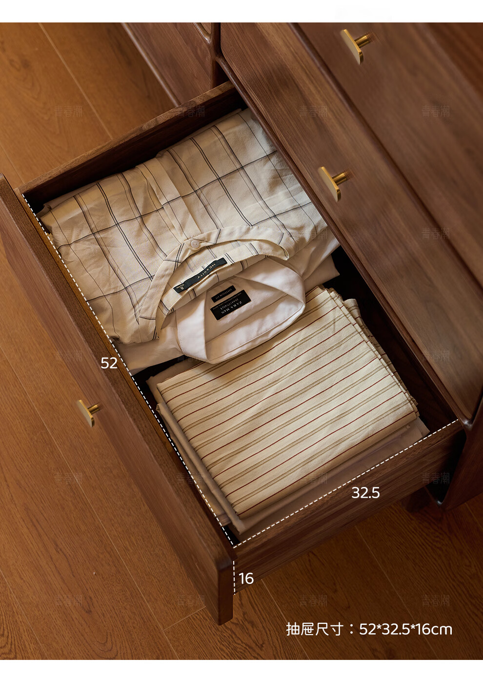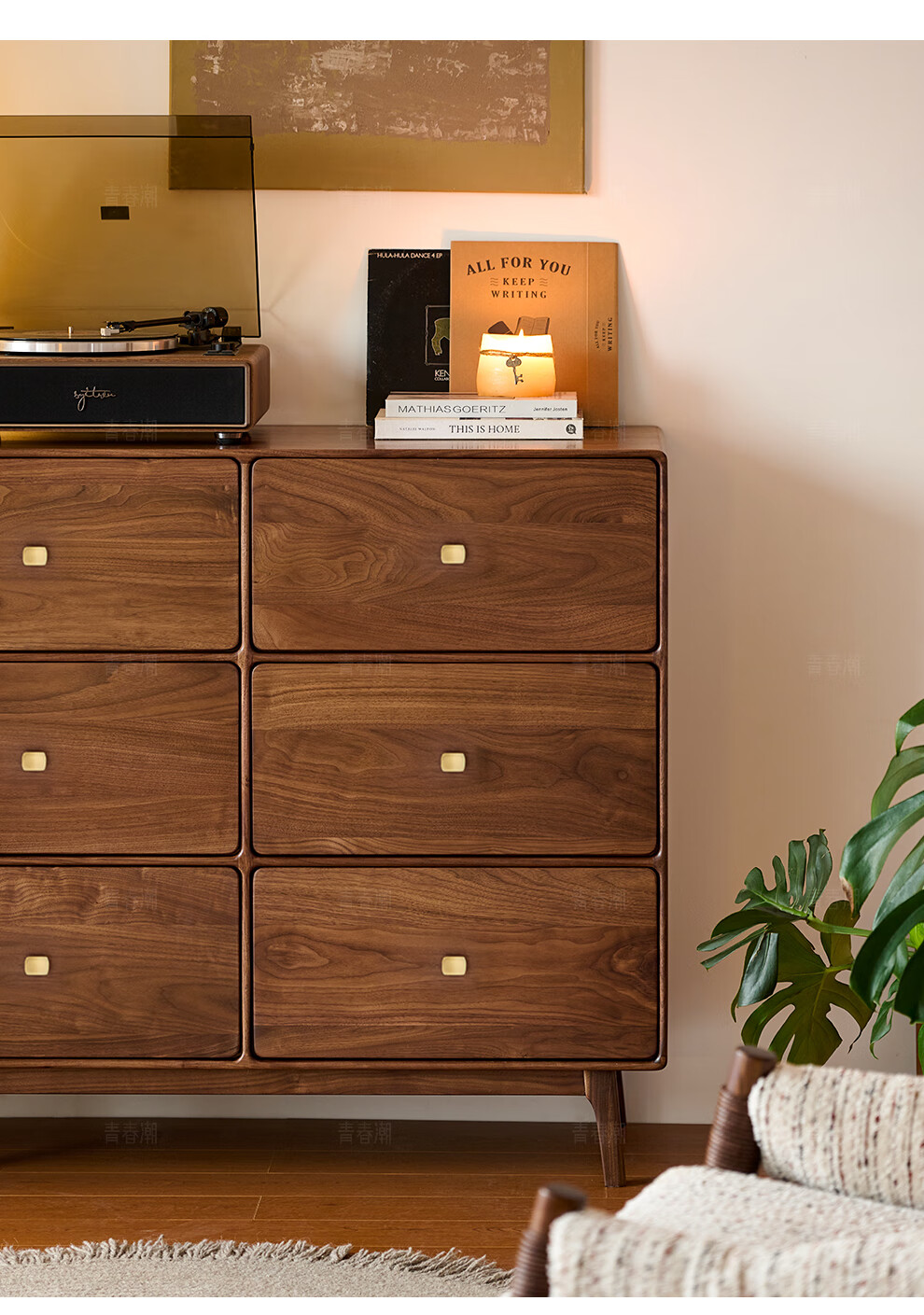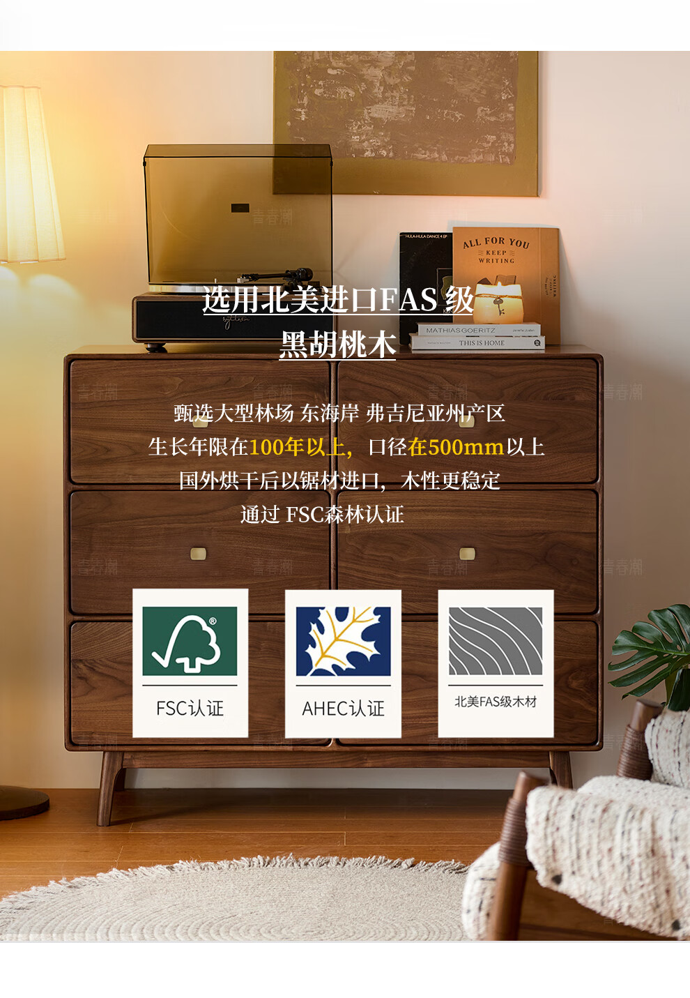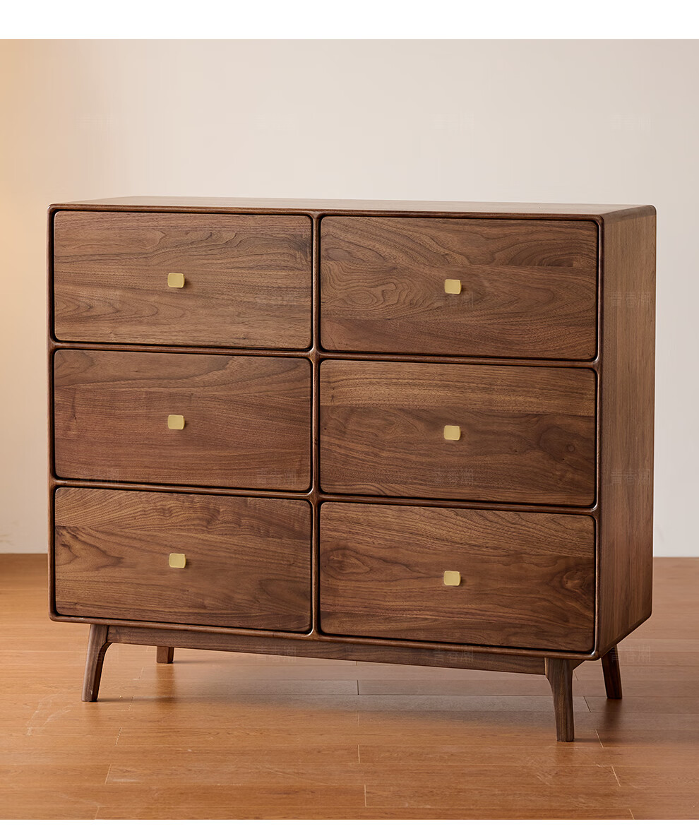 Youth Trend solid wood six-drawer chest, bedroom six-drawer chest, North American black walnut storage storage cabinet, living room TV cabinet side cabinet, all black walnut (115*45*100)
