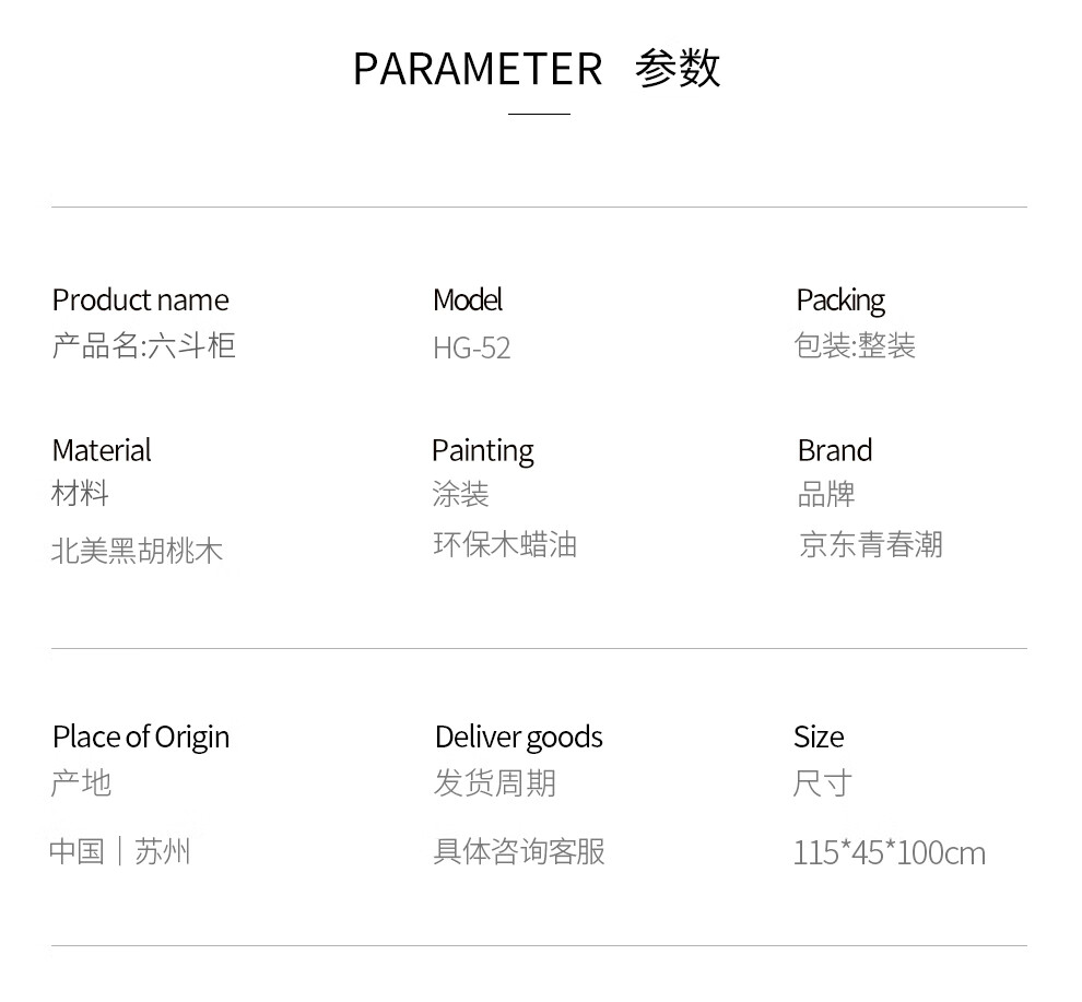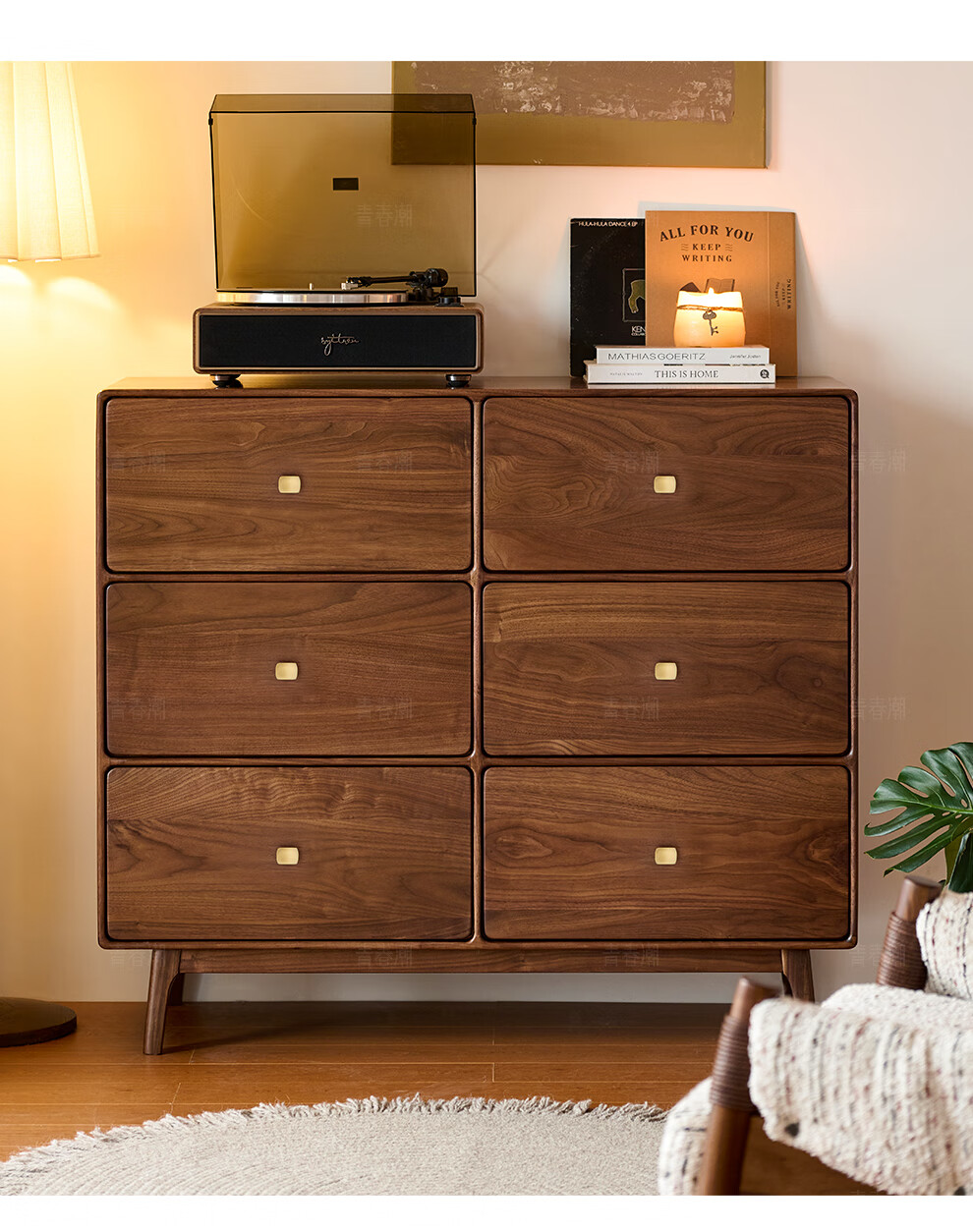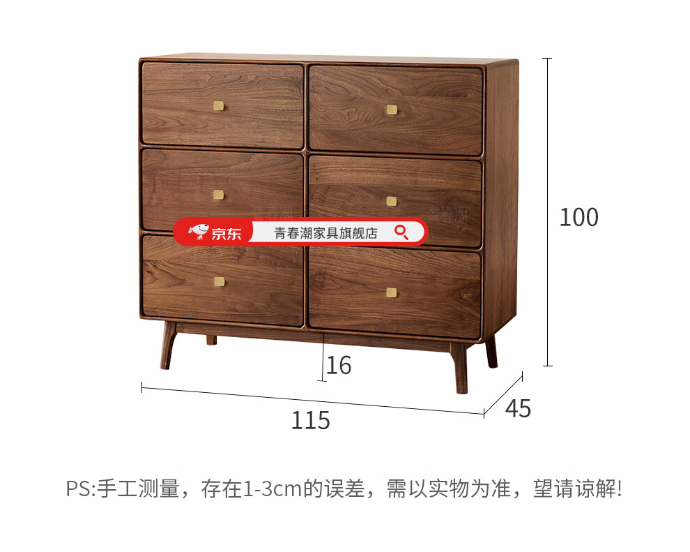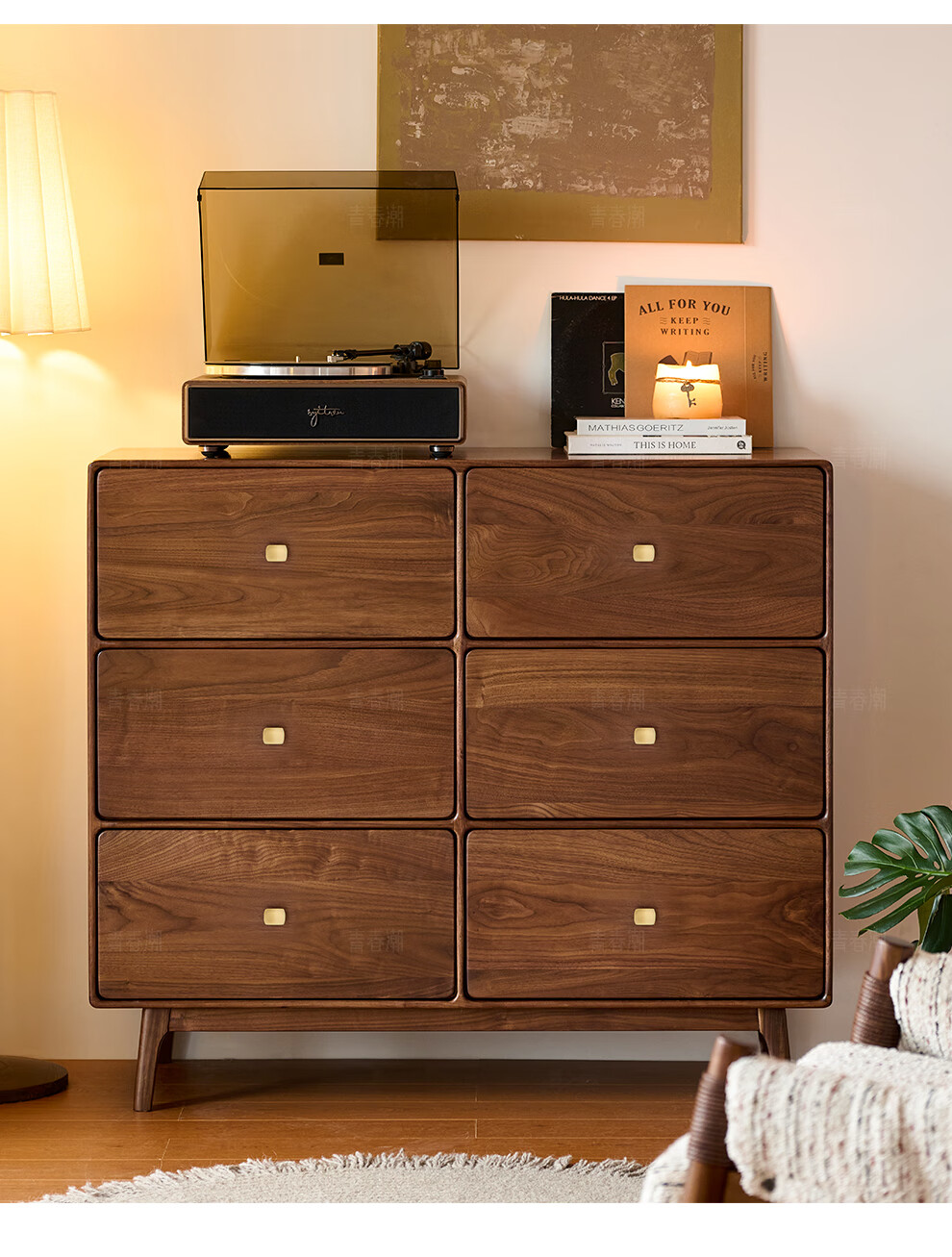 Youth Trend solid wood six-drawer chest, bedroom six-drawer chest, North American black walnut storage storage cabinet, living room TV cabinet side cabinet, all black walnut (115*45*100)
