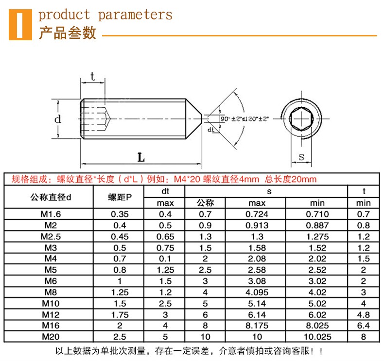 Easy 304 stainless steel set screw tip machine hexagonal headless screw top screw screw M3*3 (40 pieces)