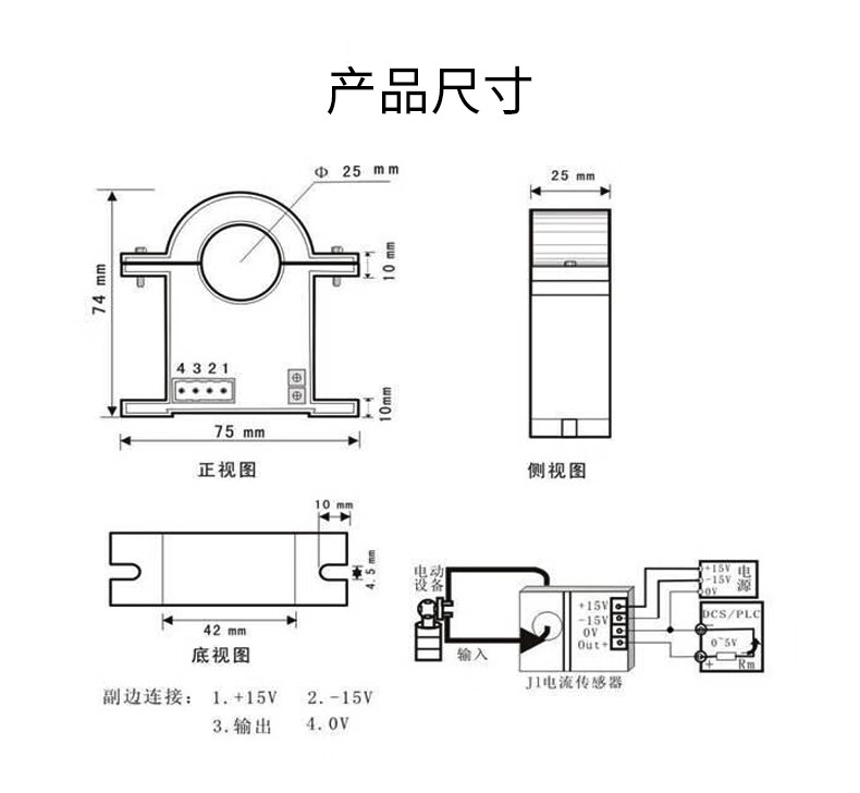Hall current transmitter AC DC current sensor open loop large hole AC100A 200A DC0-200A
