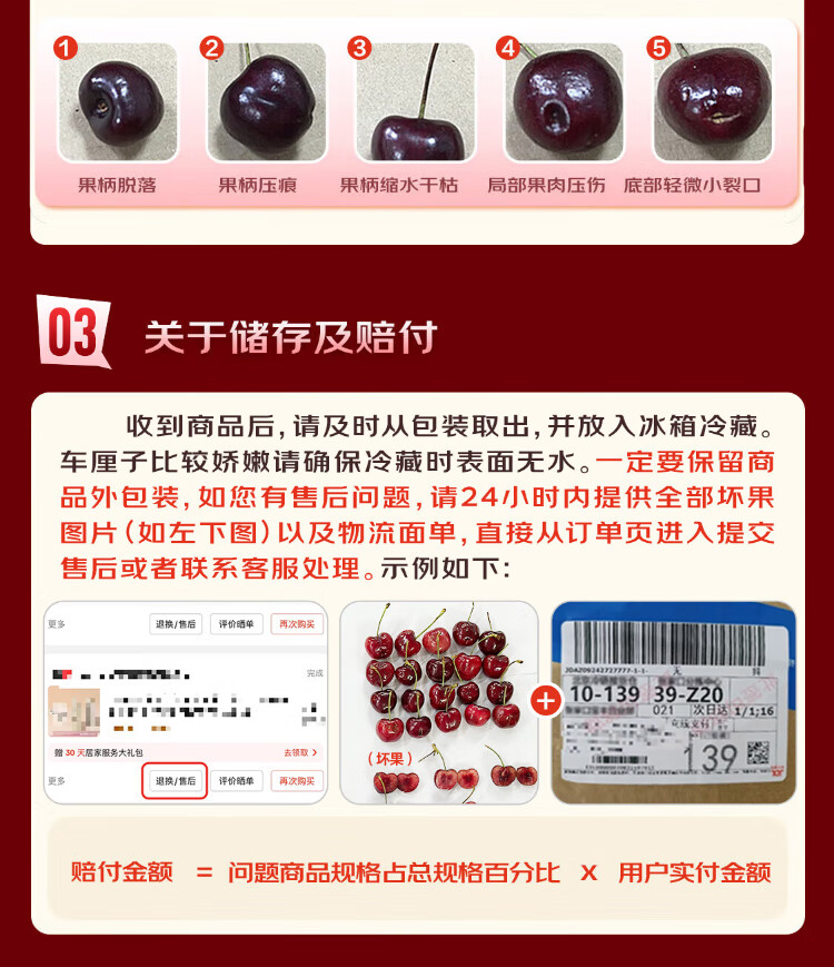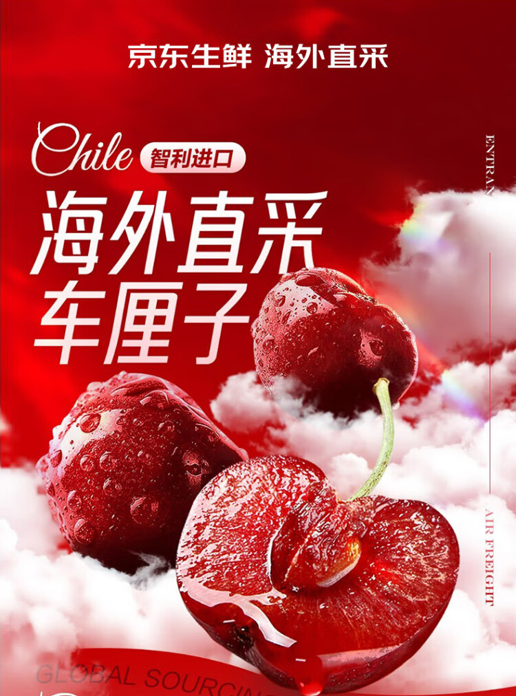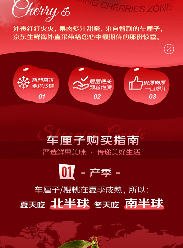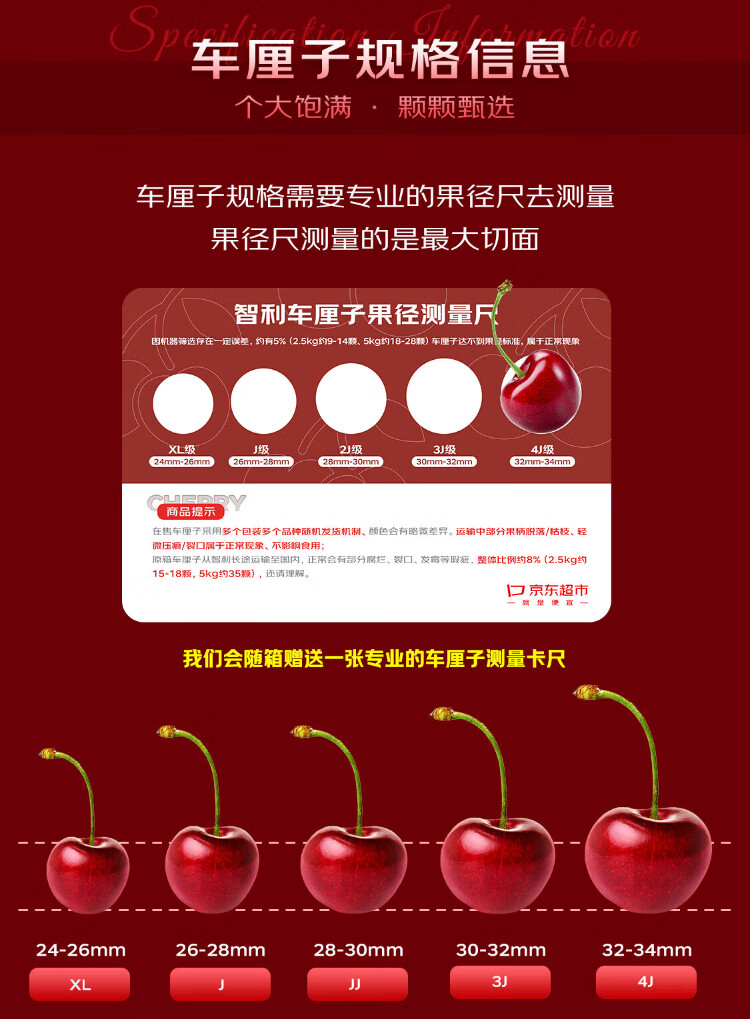 Jingxiansheng Chilean imported cherries J grade 450g package, fruit diameter about 26-28mm, fresh fruit