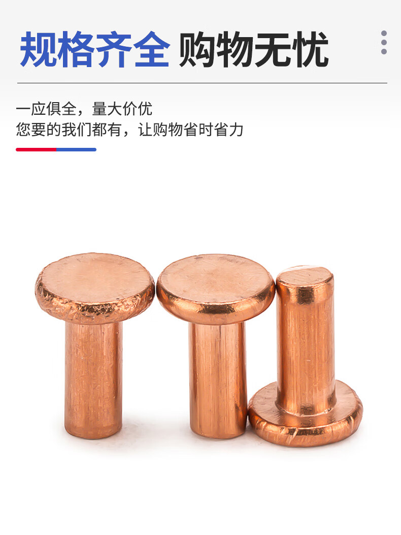 Jinggong M6M8 GB109 copper flat head solid rivet full copper solid copper rivet flat head rivet copper rivet 7L 6*8 5 pieces