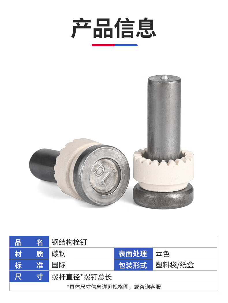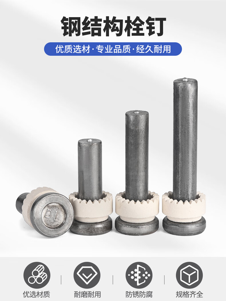 Jinggong steel structure bolts cylindrical head welding nails floor plate shear nails welding nails bolts national standard GB10433 L M16*50 ML15 material (5 pcs)