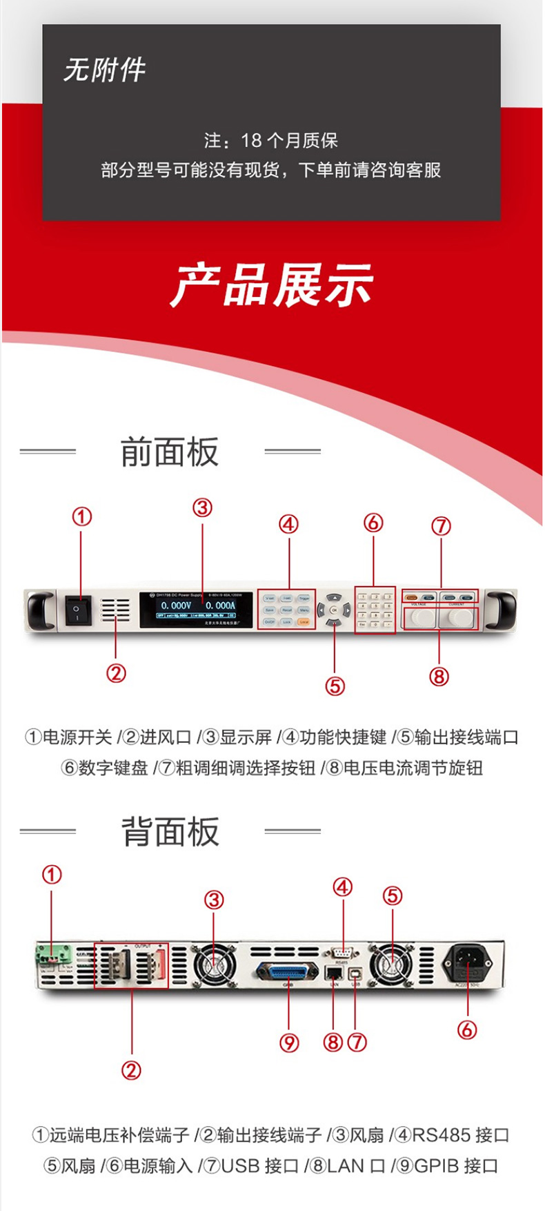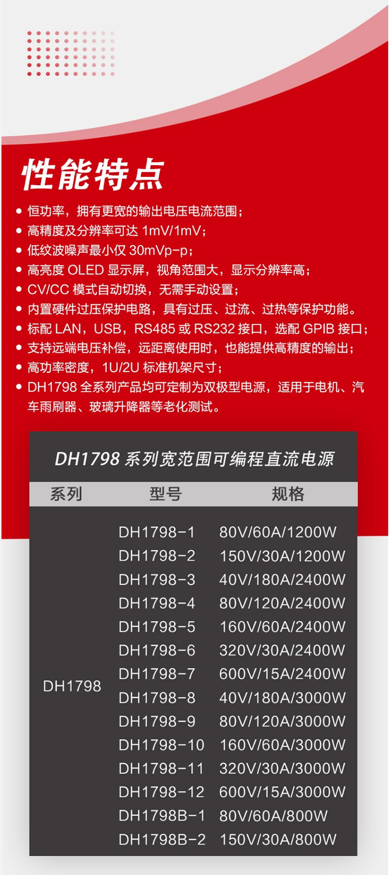 DAHUA Beijing Dahua DH1798 wide-range programmable DC regulated power supply independent output high-precision adjustable power supply DH1798B-1 (0~80/0~60A/800W