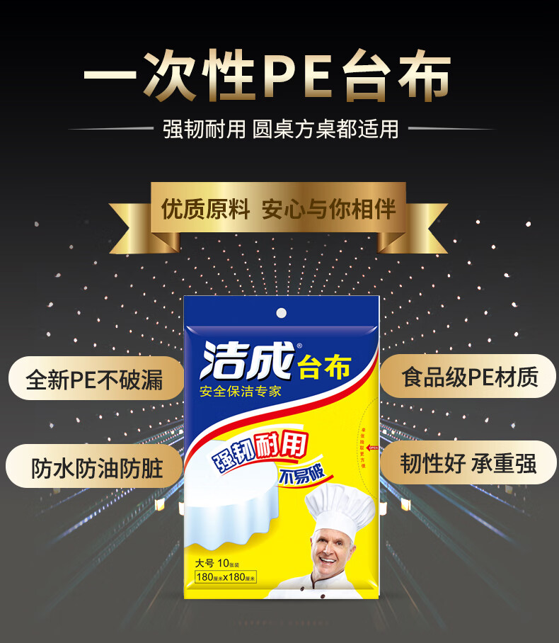 Jiecheng tablecloth transparent disposable PE thickened waterproof and oil-proof picnic tablecloth for banquet thick white 180*180cm*50 sheets