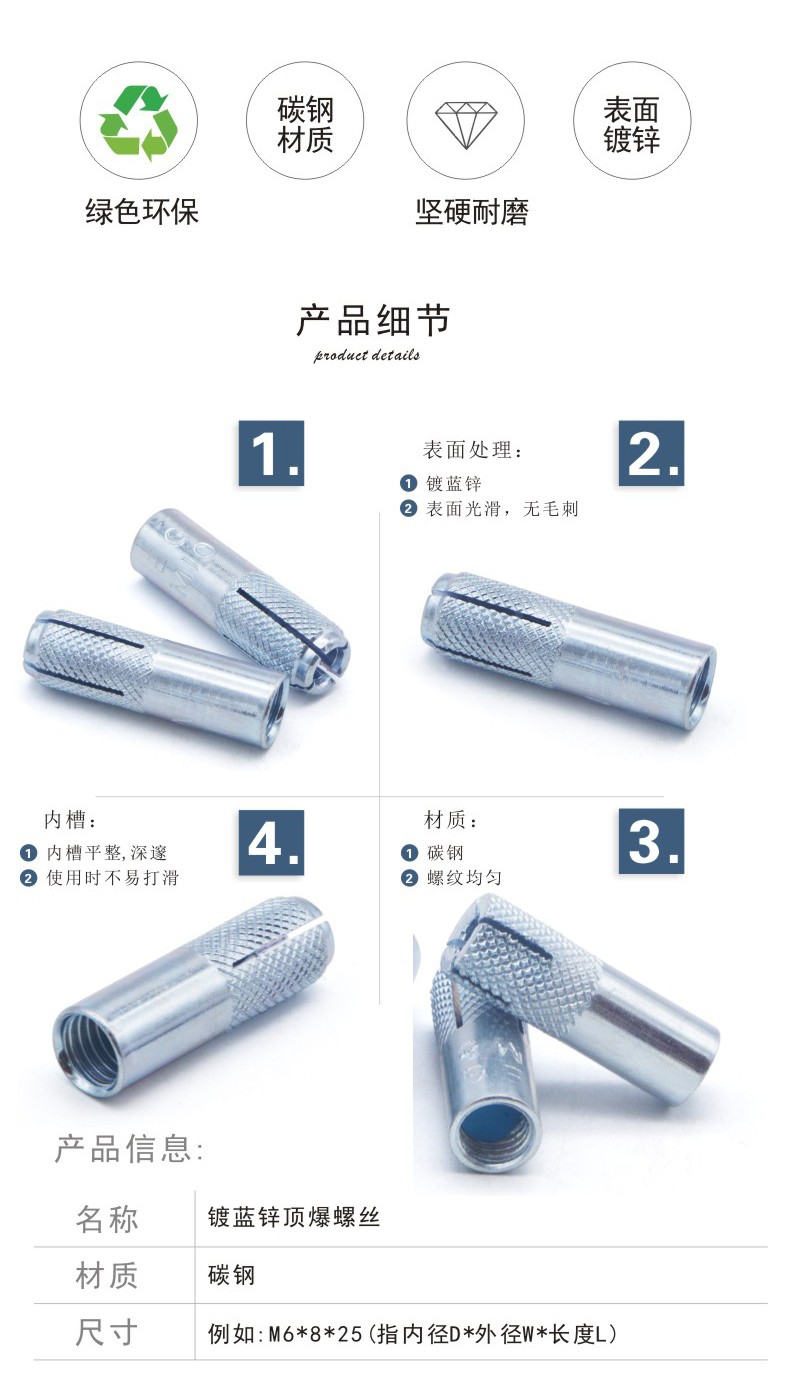 M6-M8-10-12 National standard galvanized internal expansion pipe top explosion implosion gecko flat explosion screw M10 (5 pieces)