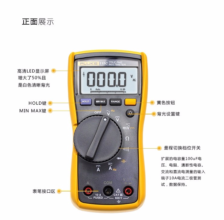 FLUKE Fluke multimeter true RMS multimeter high-precision digital multimeter automatic range FLUKE115C standard + charging set