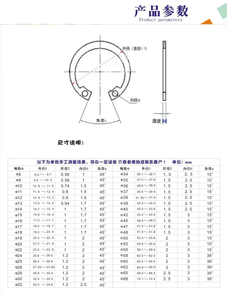M8-M160 shaft circlip 65 manganese GB894 shaft card external shaft elastic retaining ring C-type circlip 8 (20 pieces)