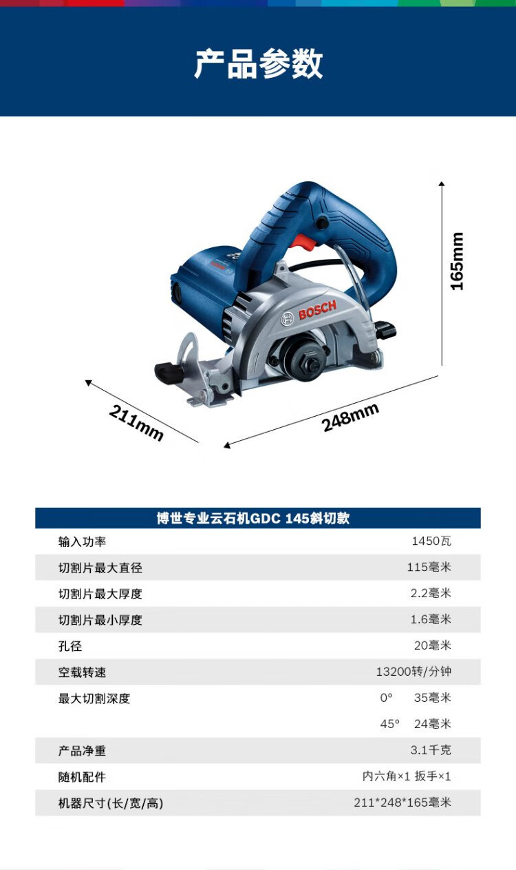 Bosch (BOSCH) cutting machine marble machine slotting machine concrete tile stone multi-functional cutting 1450 watts GDC145