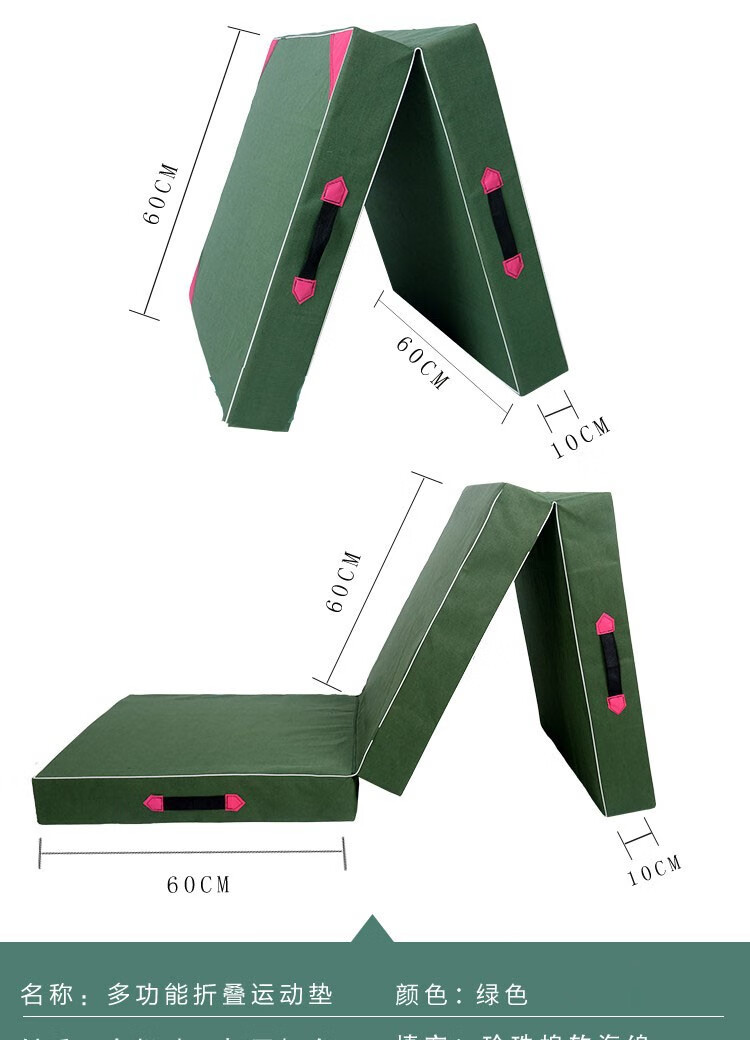Mengduofu Gymnastics Mat Folding Thickened Sit-Up Mat High Jump Mat School Nap Student Physical Test Training Protective Mat Two-fold International Canvas 120*60*5cm Green Gymnastics Mat