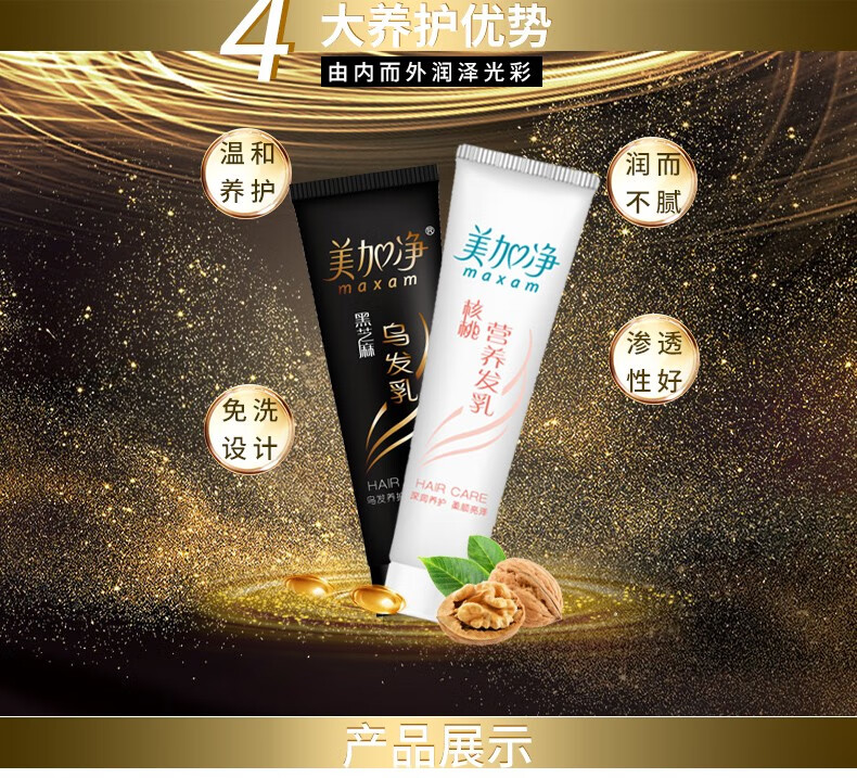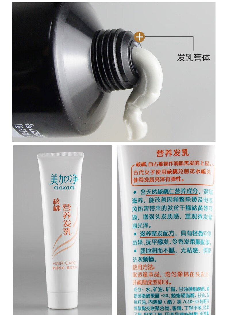 MegaNet Walnut Nutritional Hair Cream Black Hair Cream Smooth and Shiny Black No-Rinse Hair Conditioner Essence Walnut Nutritional Hair Cream 100g*2 sticks MegaNet