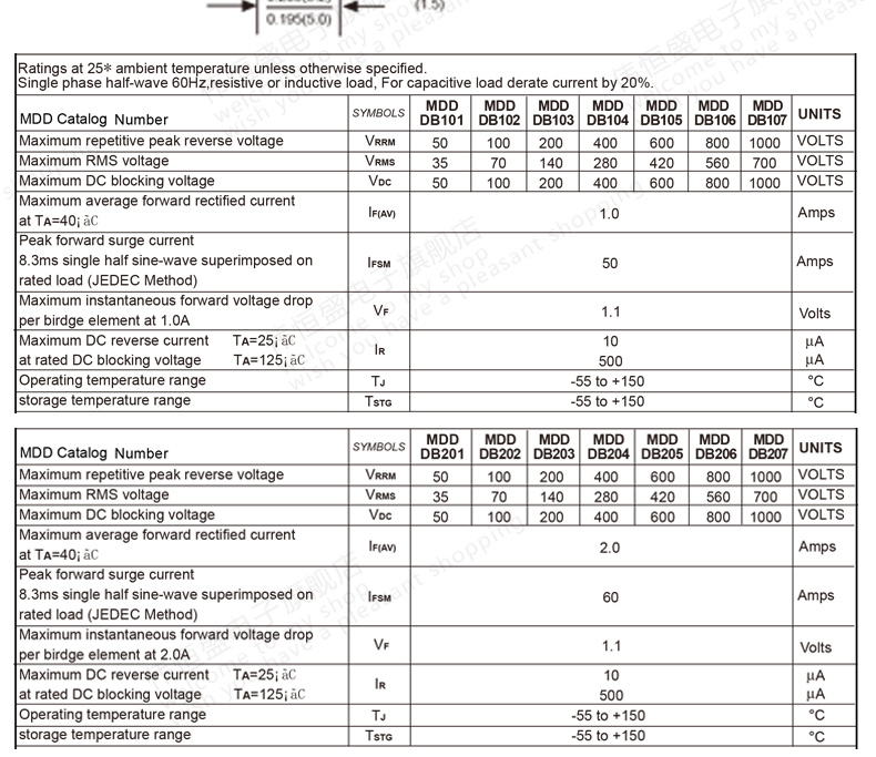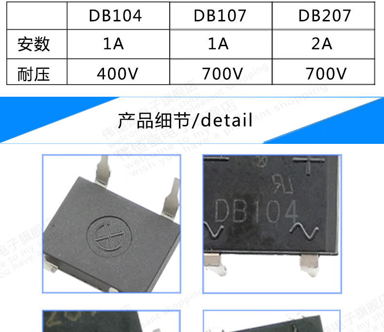 (50 pieces per piece) Rectifier DB104/DB107/DB207 Square Bridge Bridge Stack Direct Plug New Original