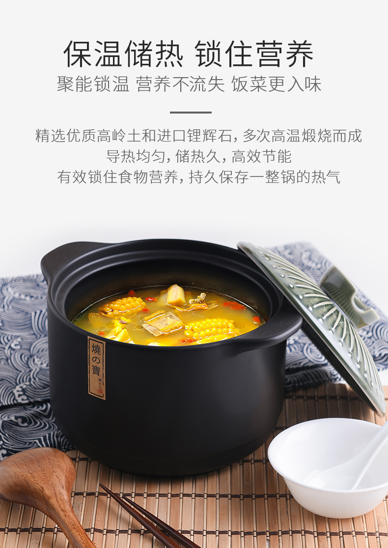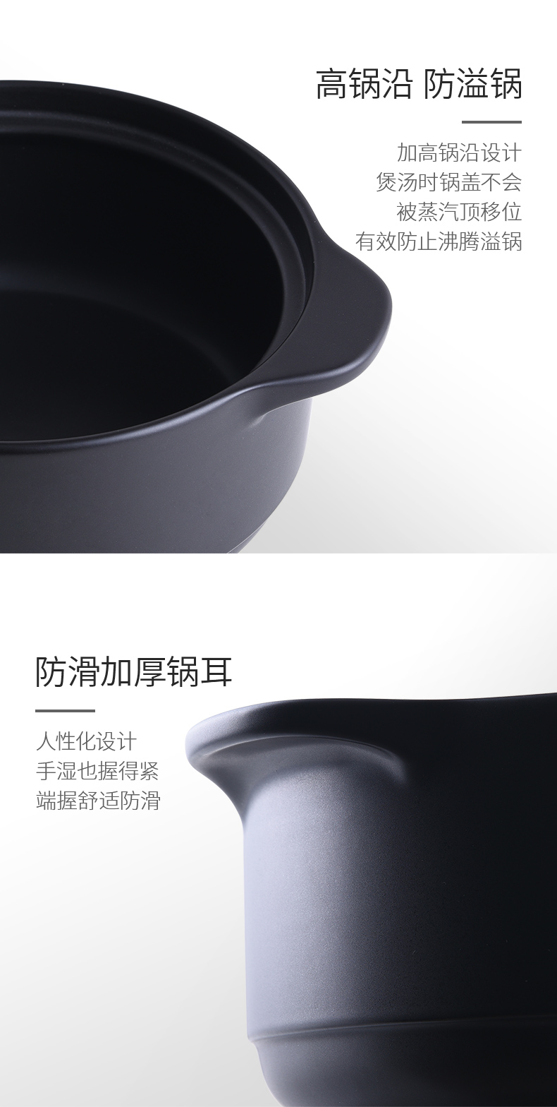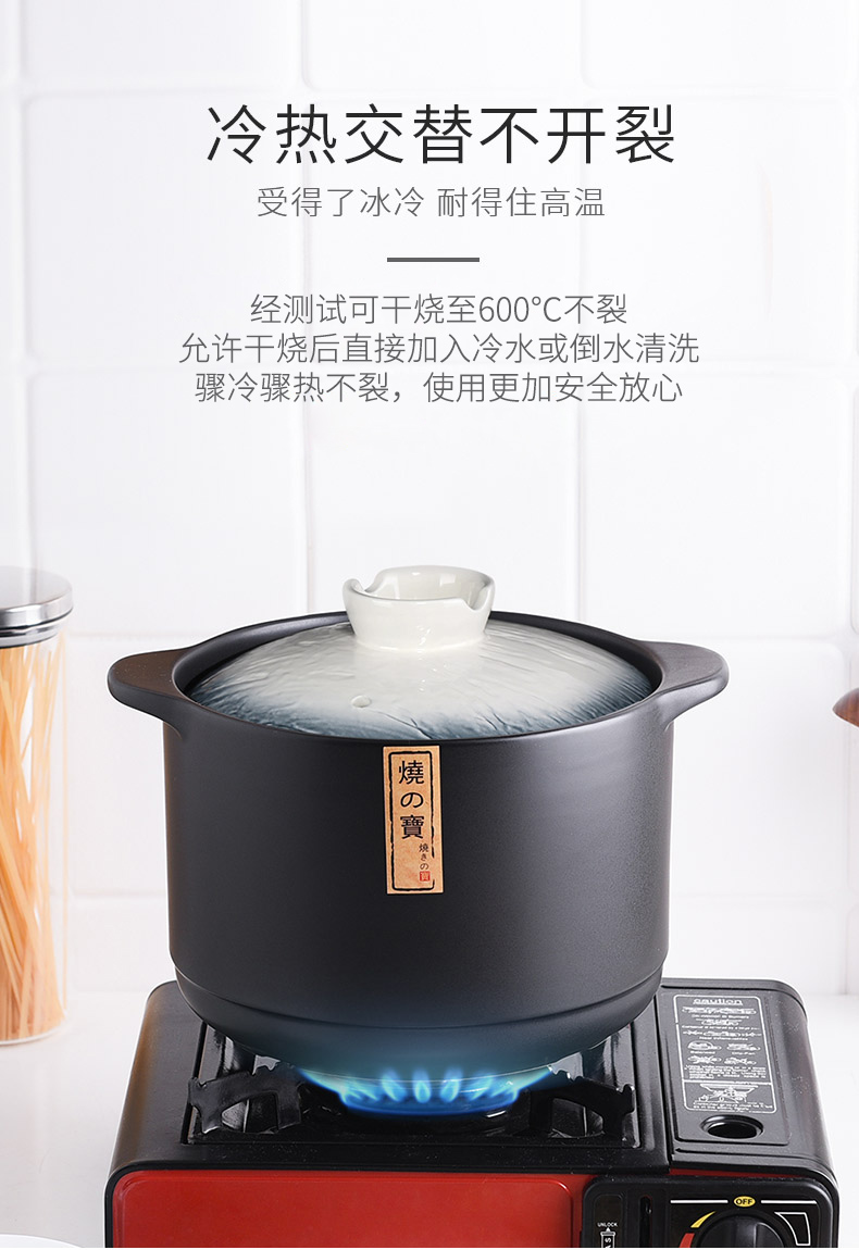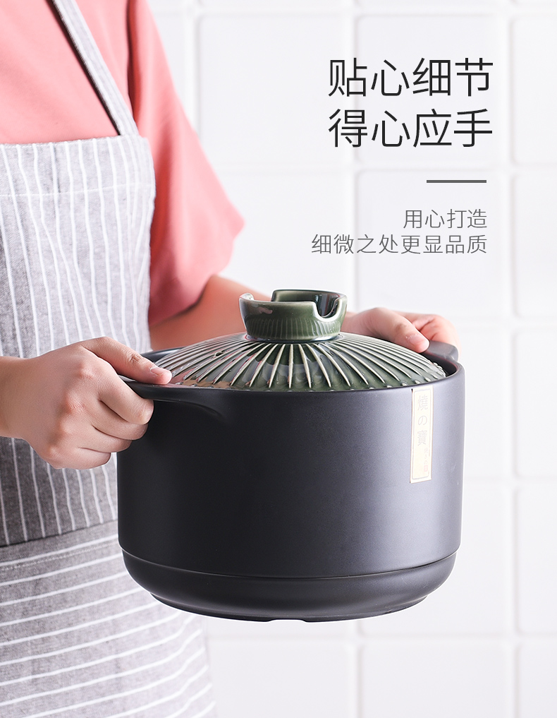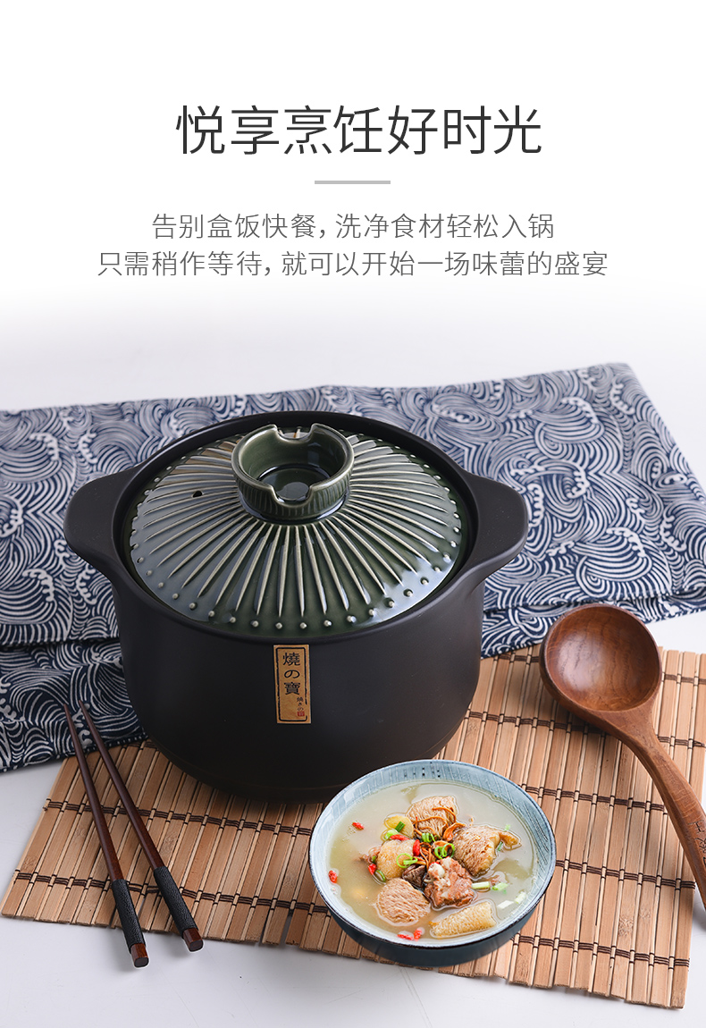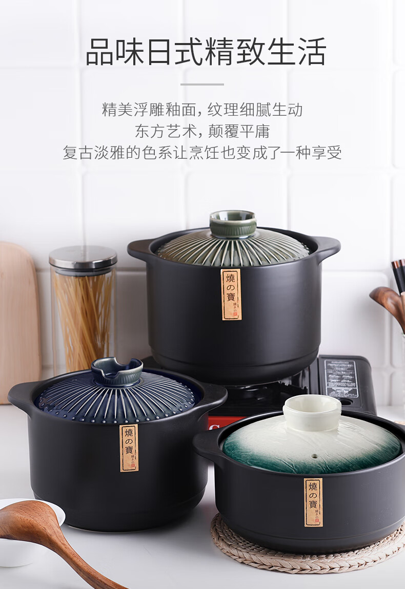 Pottery King single-handled casserole dry-fired non-cracking soup stew pot porridge small size 1-2 people long-handled ceramic milk pot with handle blue stripe single-handled milk pot 1.5L