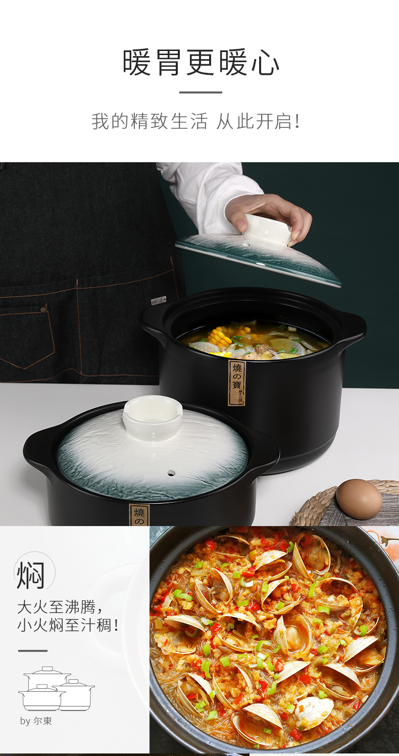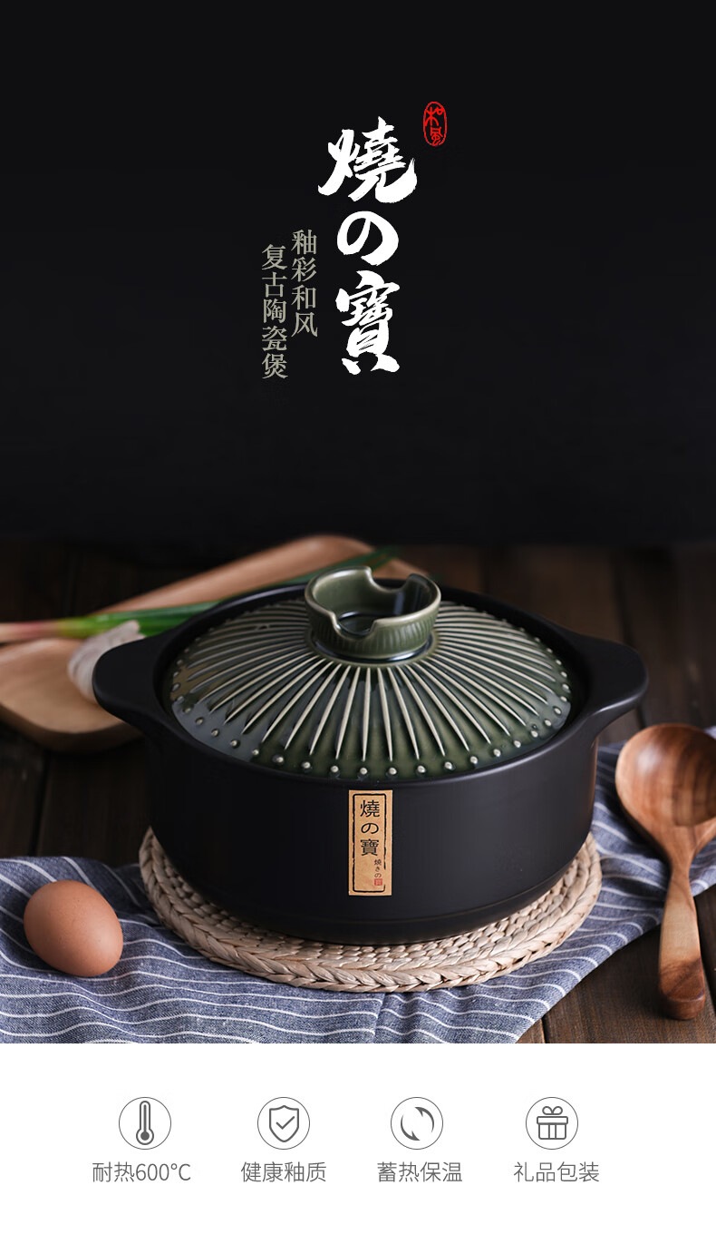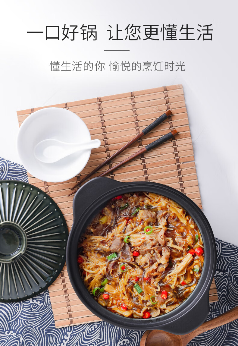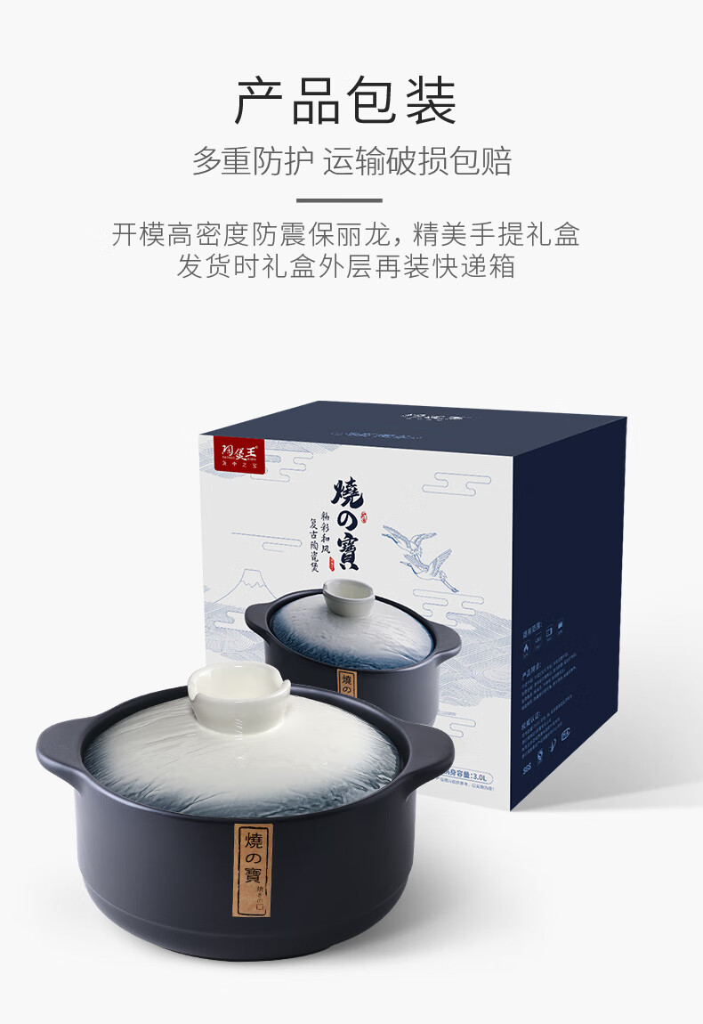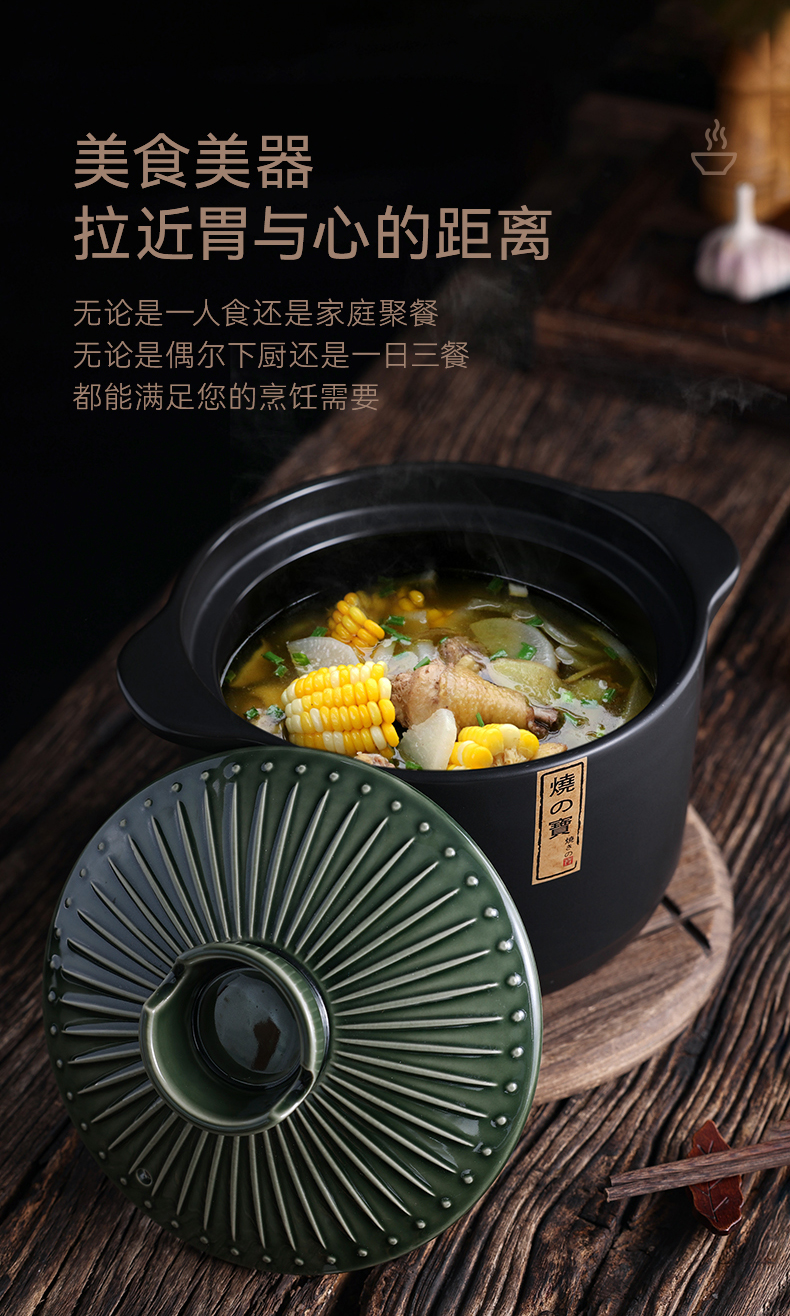 Pottery King single-handled casserole dry-fired non-cracking soup stew pot porridge small size 1-2 people long-handled ceramic milk pot with handle blue stripe single-handled milk pot 1.5L