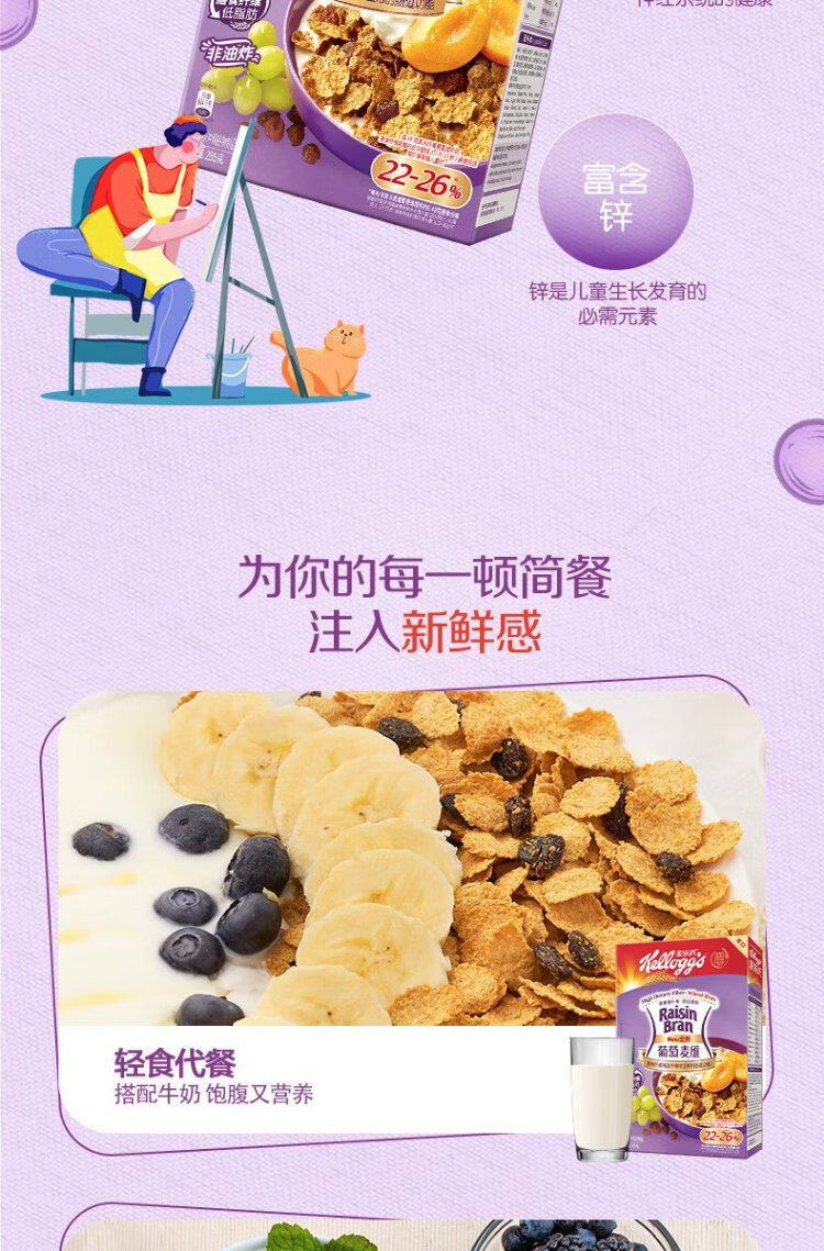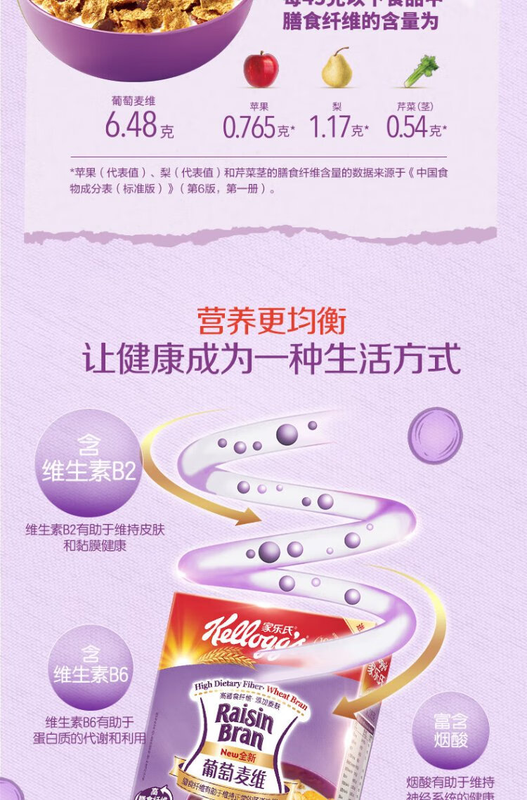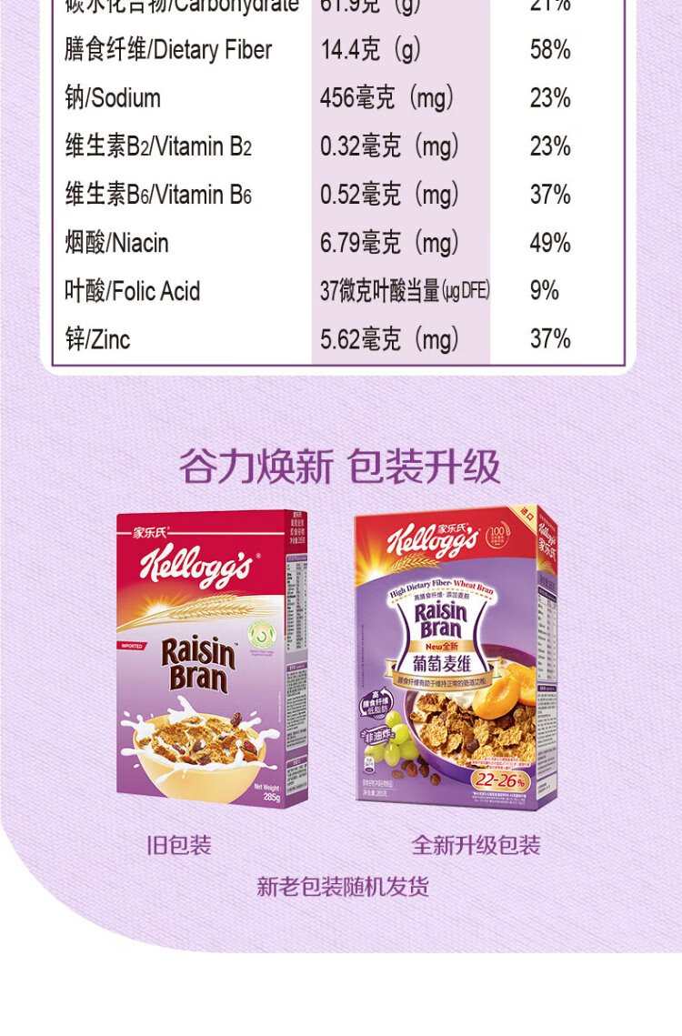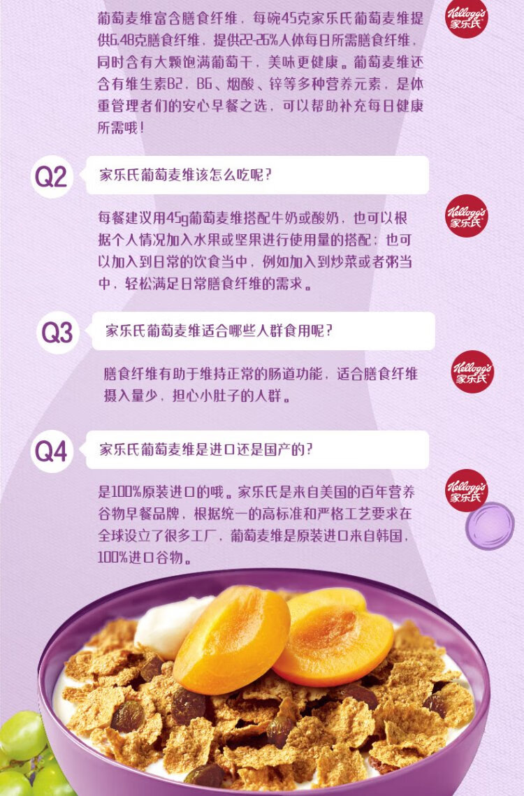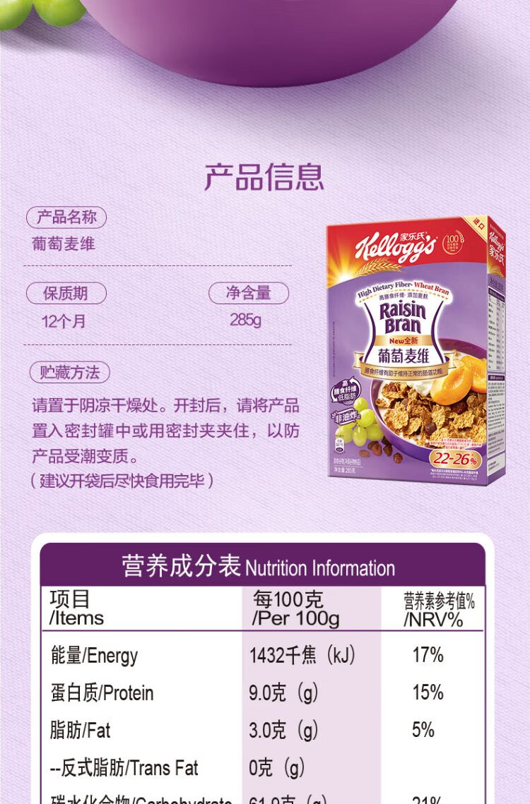 Kellogg's South Korea imported Grape McVie 285g/box rich in dietary fiber nutritional cereal ready-to-eat breakfast meal replacement