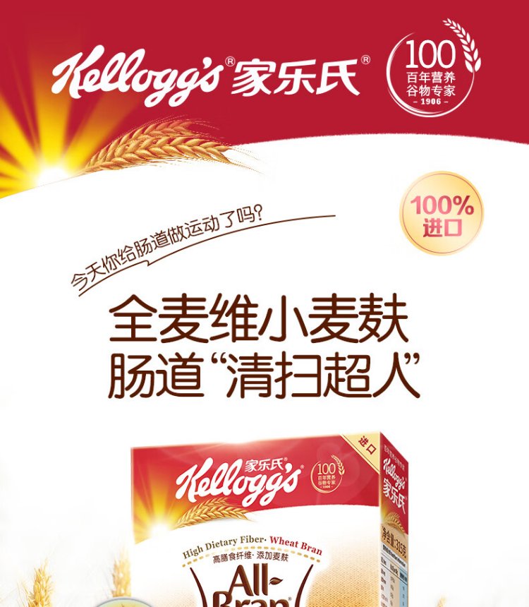 Kellogg's imported whole wheat vitamin Oat cereal crisp cereal rich in dietary fiber nutrition ready-to-eat breakfast fitness meal replacement 315g