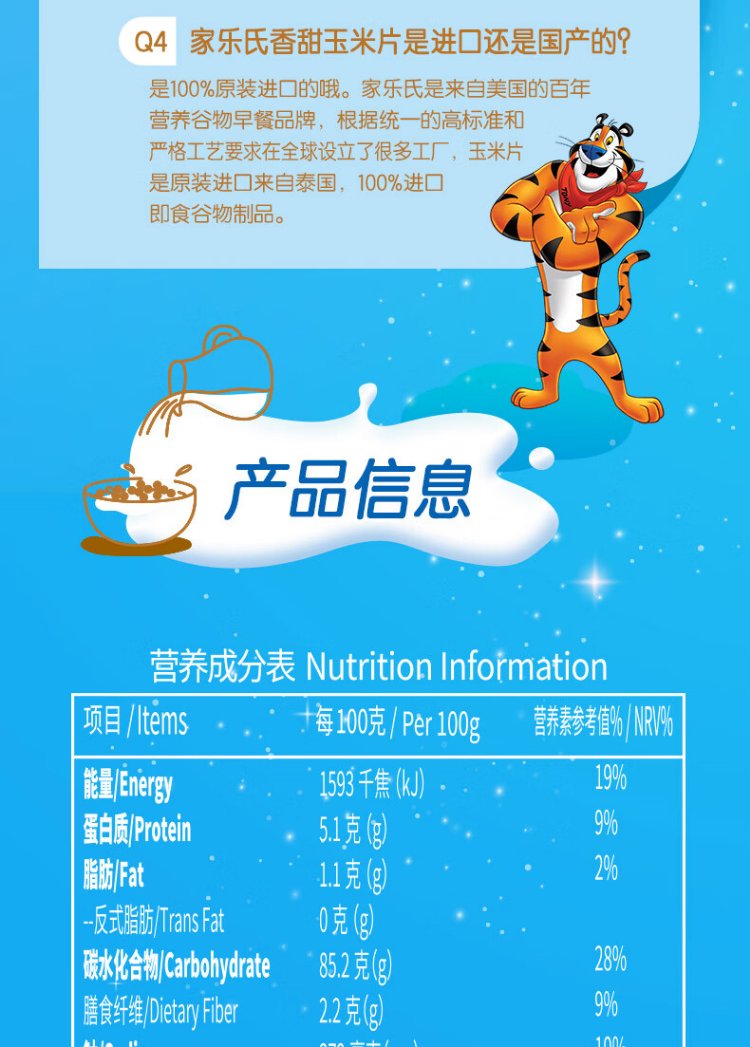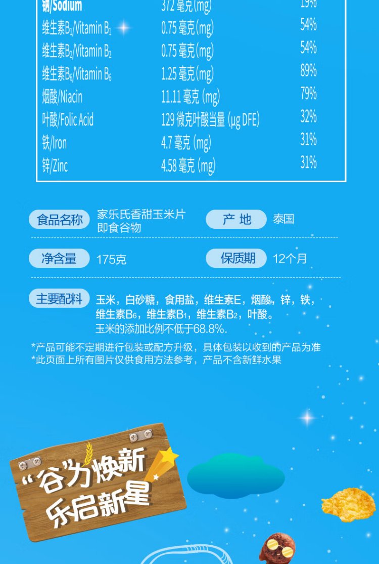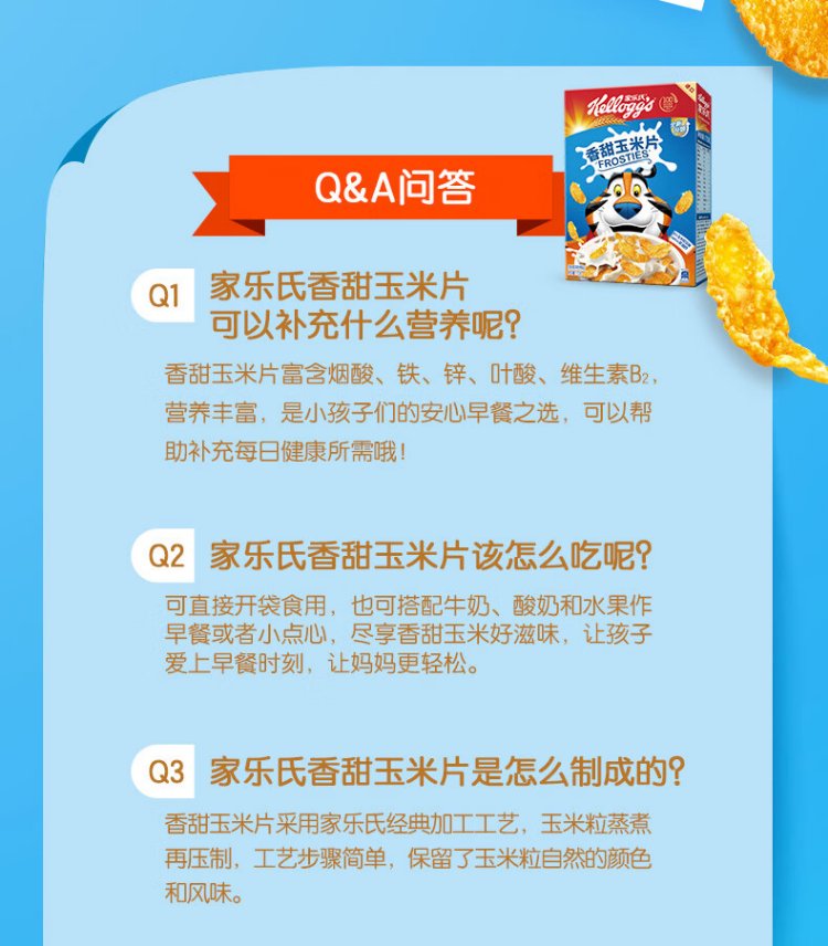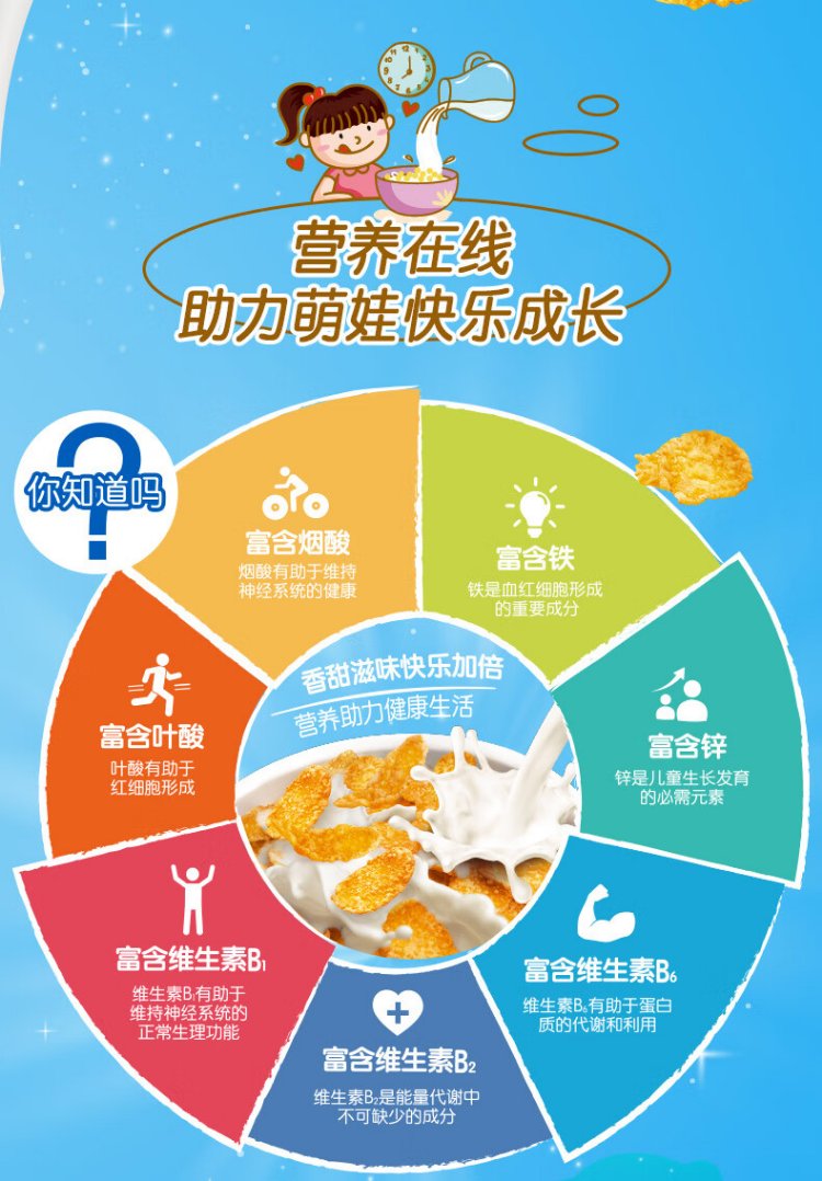 Kellogg's imported sweet corn flakes 175g/box children's nutritional cereal cereal ready-to-eat breakfast meal replacement snack