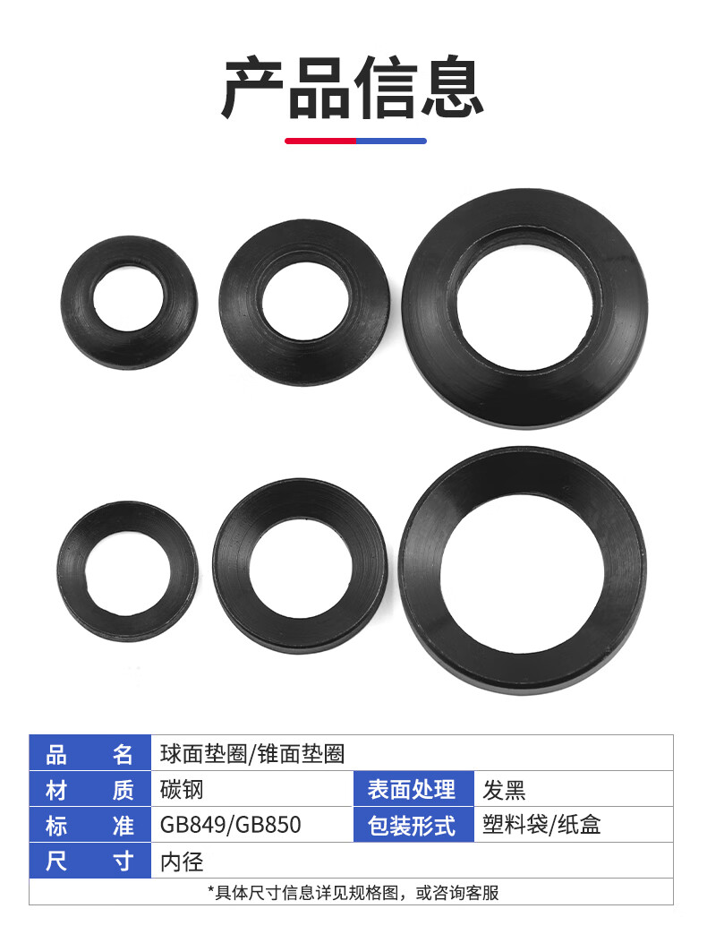 Jinggong black GB849 spherical washer and GB850 conical washer concave and convex gasket 6-64 64 (1 set)