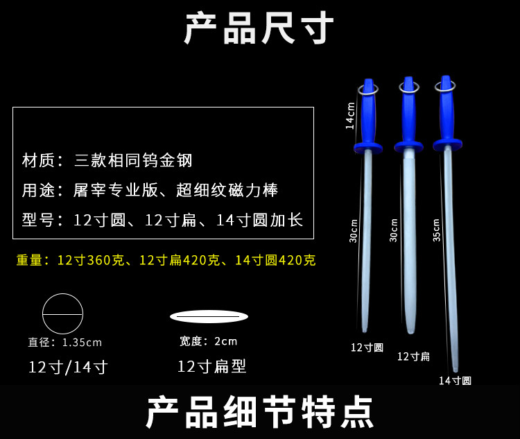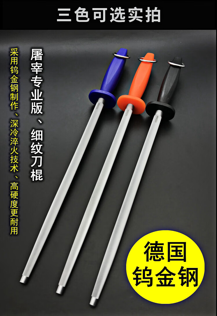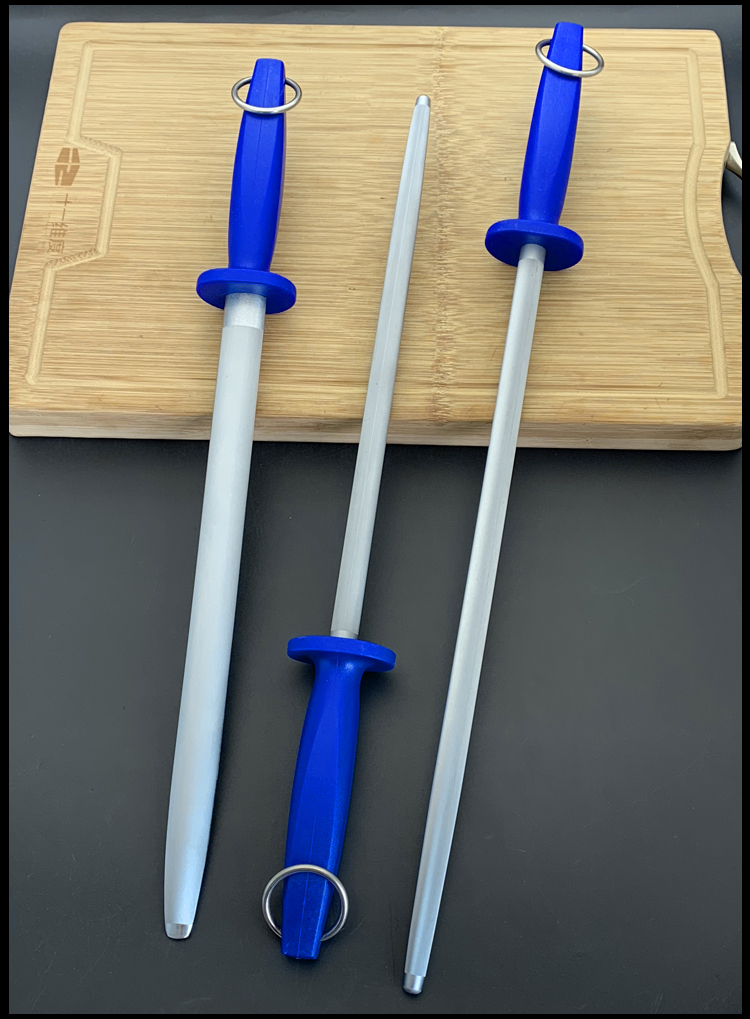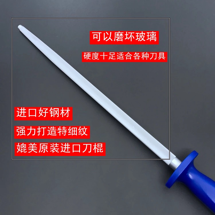 ULKNN German imported tungsten steel sharpening stick household knife sharpening block butchering professional knife stick sharpening stone sharpening stick tungsten steel 12-inch blue handle