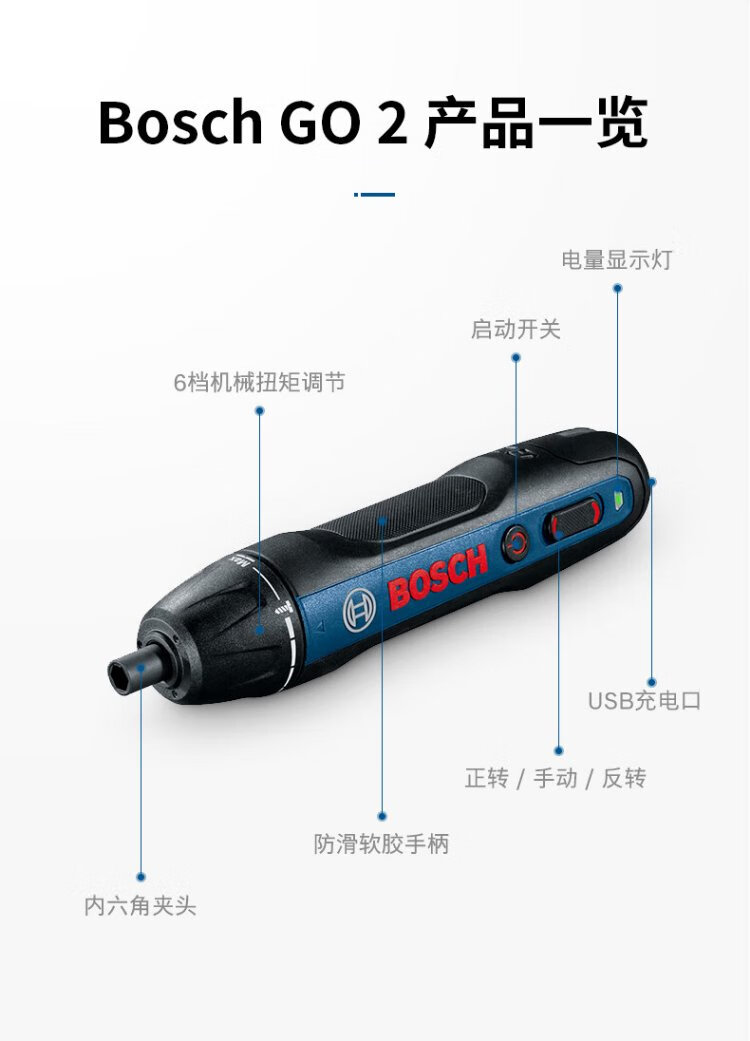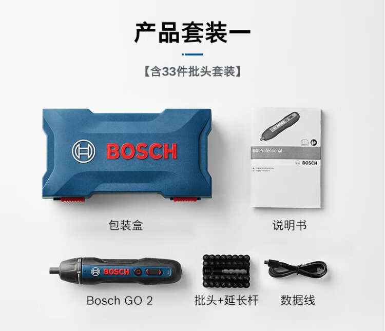 Bosch (BOSCH) Bosch GO 2 electric screwdriver lithium battery rechargeable small household screwdriver hand drill set Bosch GO 2 contains 33 pieces of bit set