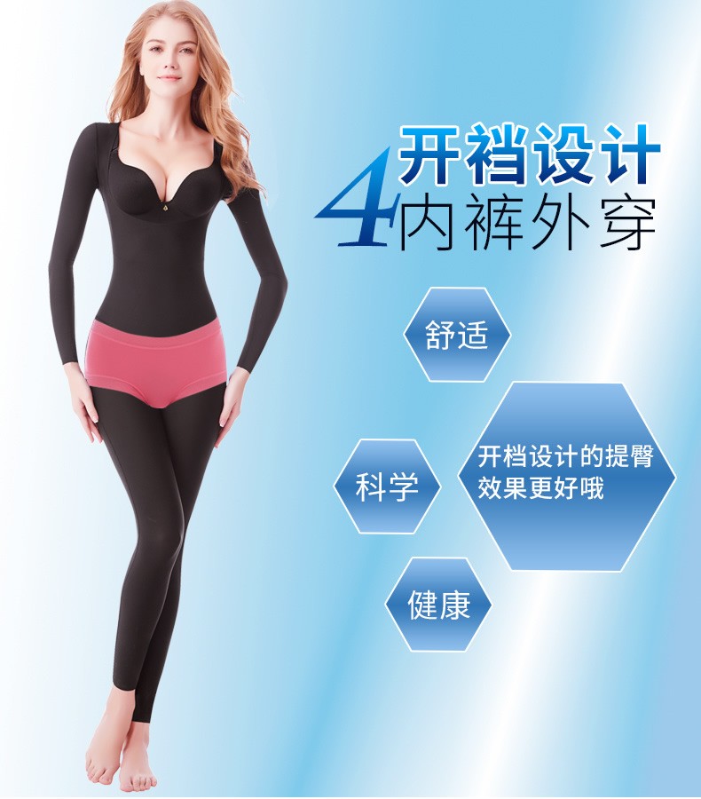 KJ French KJ one-piece shapewear long postpartum tummy tuck, stomach cincher, waist cincher with waistband, seamless body sculpting shape, black long style (open crotch) L (recommended 120-140 pounds)