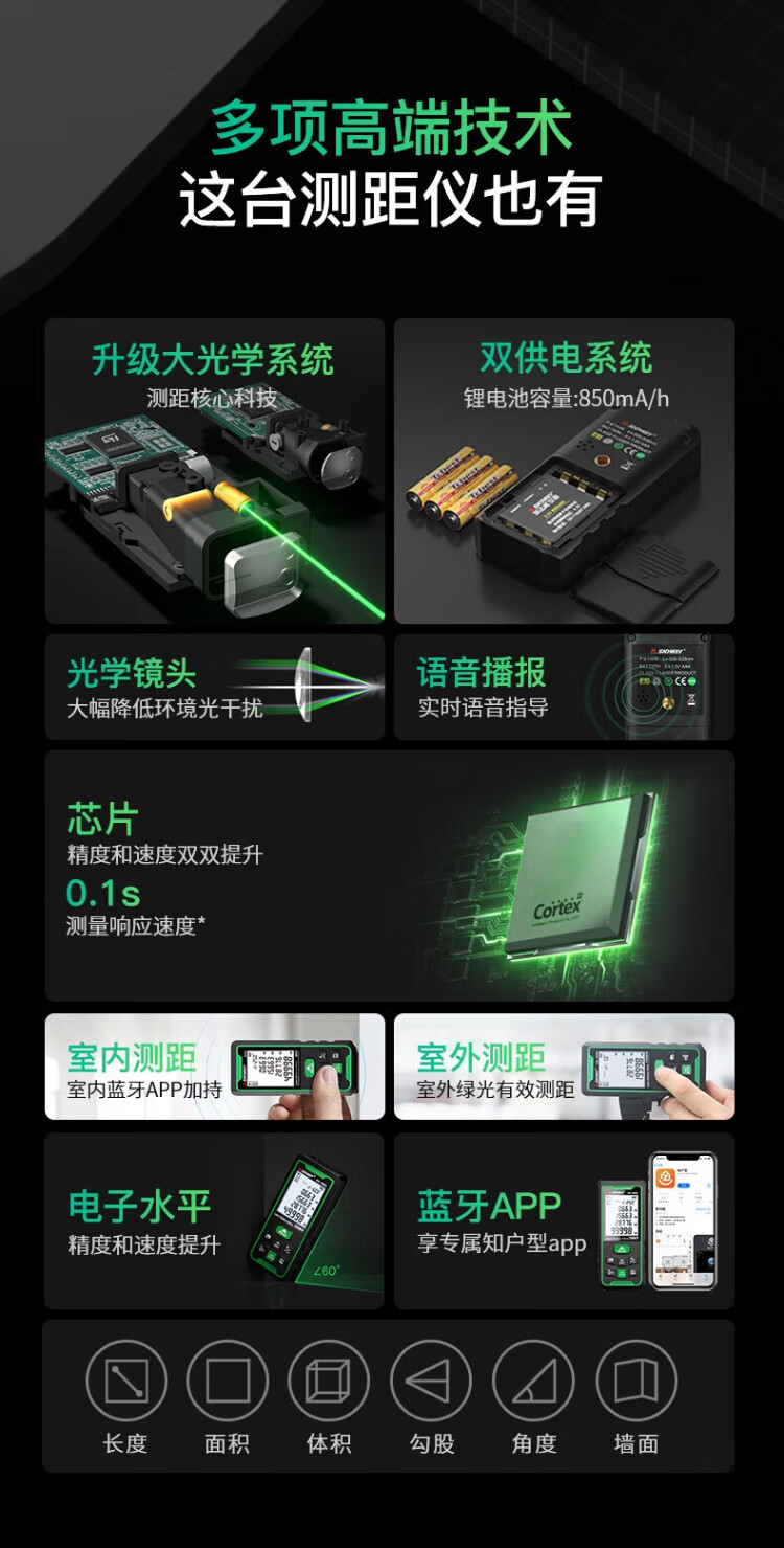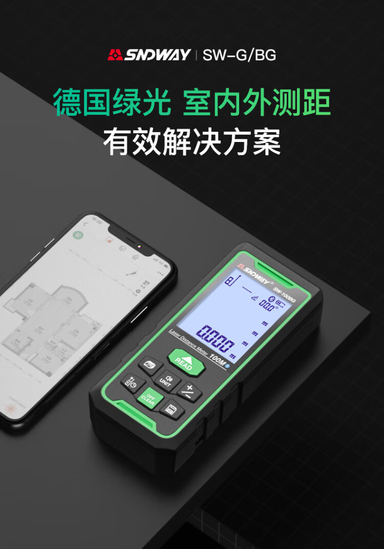 Shendawei laser distance meter outdoor electronic ruler high-precision infrared laser ruler outdoor distance meter indoor room measuring instrument SW-100BG (green light bluetooth model pictured)