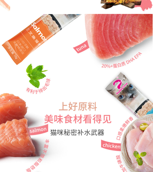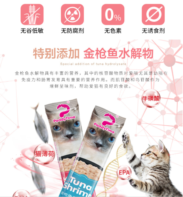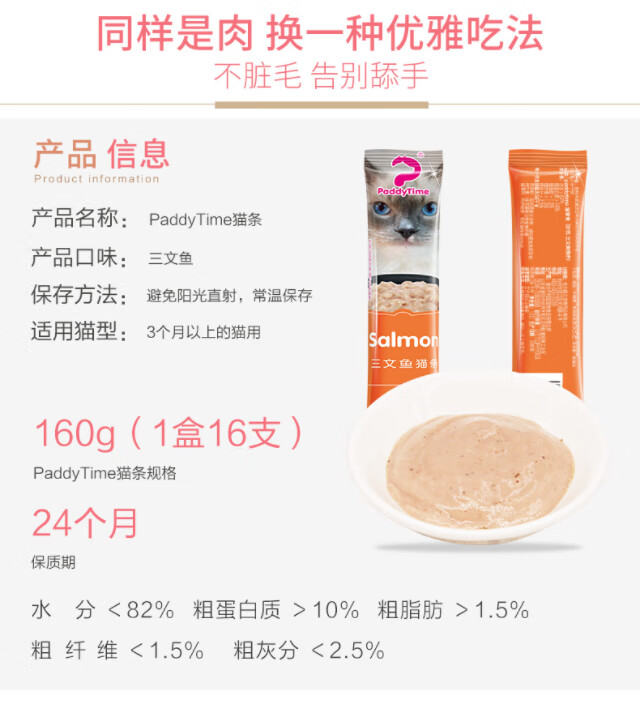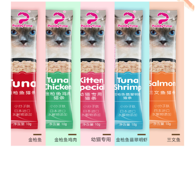 Most Favorite (Paddy Time) Cat Snacks Cat Snacks Salmon 10g*16 Packs Pet Adult and Kitten Wet Food Liquid Snacks Replenish Hydration and Fattening Hair