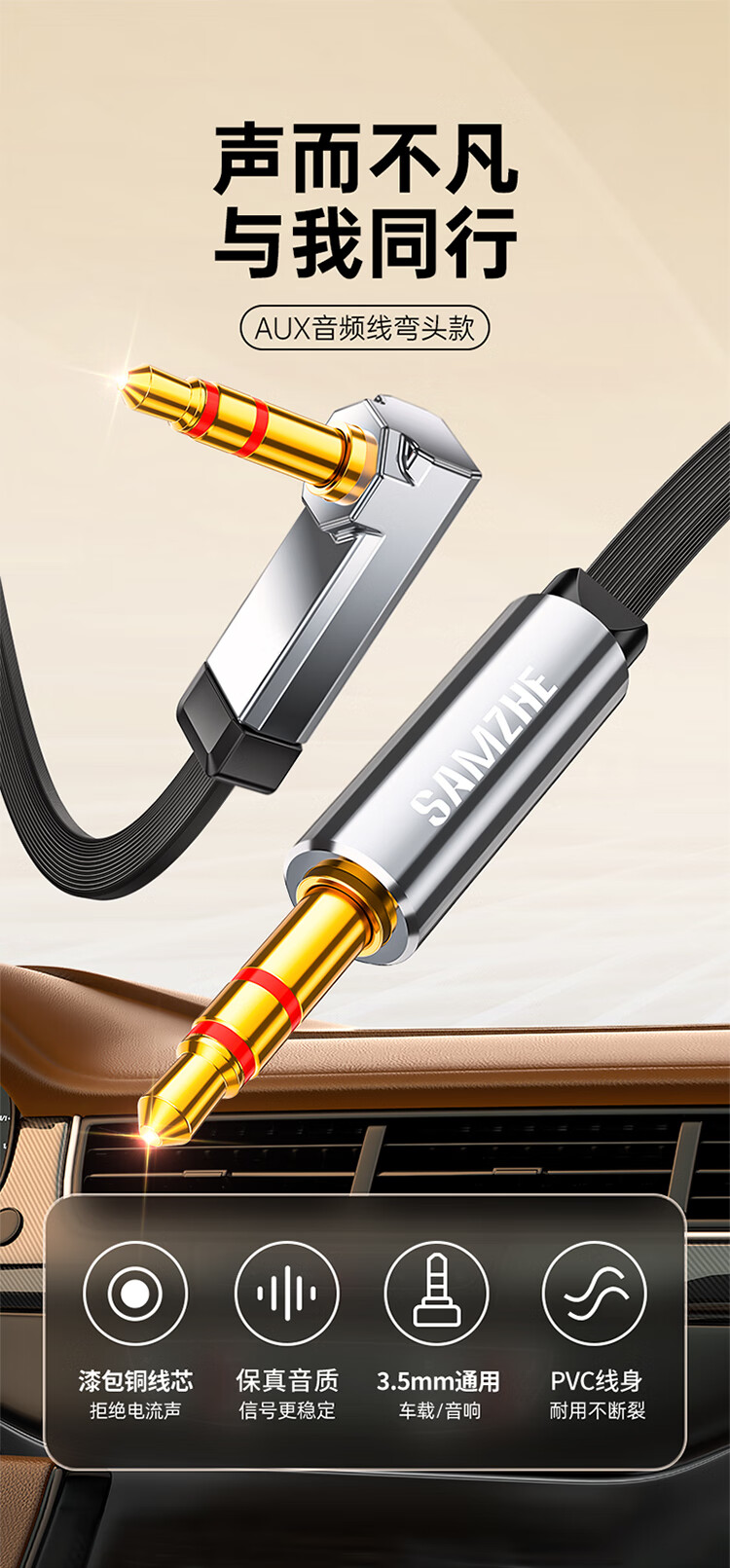 Shanze 3.5mm audio cable elbow, male to bus car aux audio connection cable, computer tablet, mobile phone headset, straight to bend transfer flat cable, black 1 meter YP-510