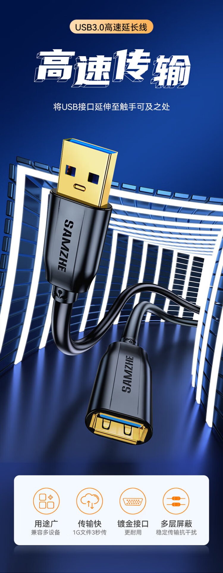 Shanze usb3.0 extension cable 1 meter male to female TV USB mouse keyboard hard drive extension cable computer data connection extension cable printer splitter adapter cable UK-010