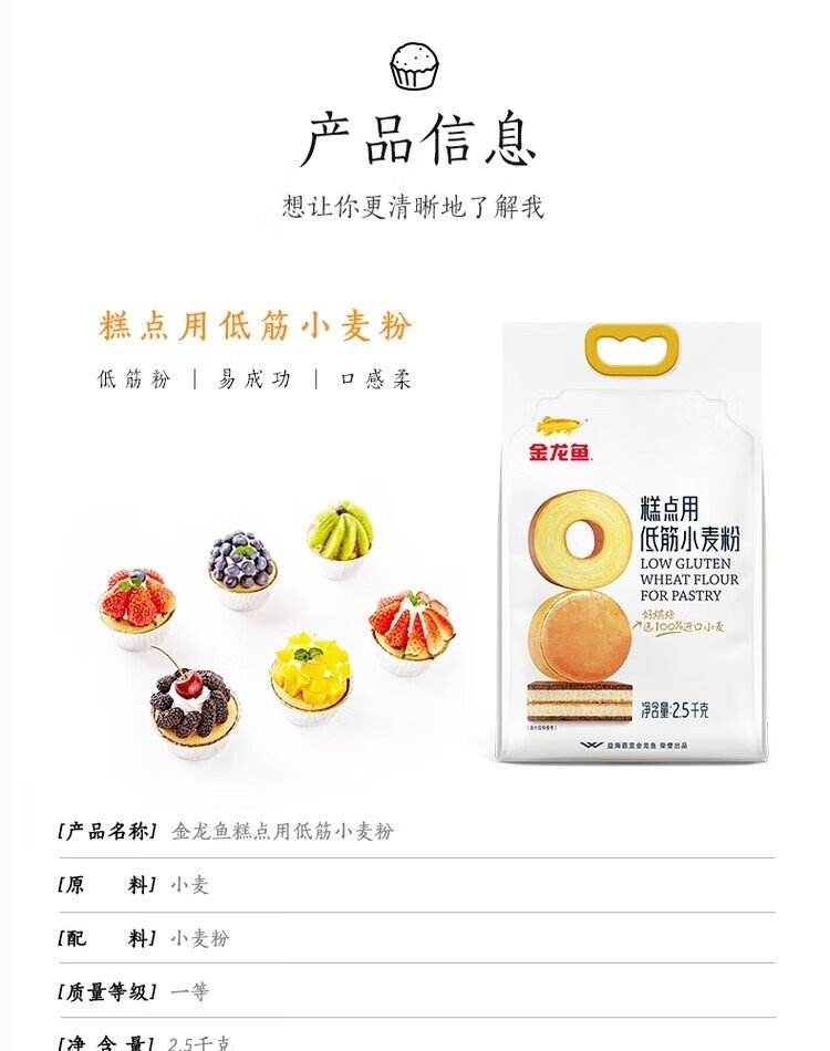 Arowana Low Gluten Flour Cake Flour Baking Ingredients Pastry Wheat Flour 5kg 100% Imported Wheat