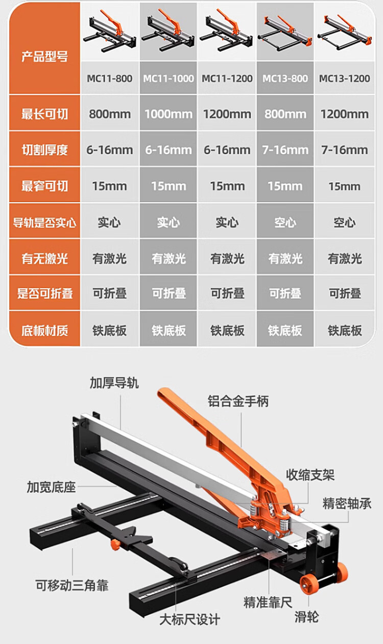 Shijing (SHIJING) tile push knife cutting artifact manual push knife orbital cutting machine floor rock slab masonry knife 3021 laser desktop sliding knife 3021 push knife 800mm standard solid monorail