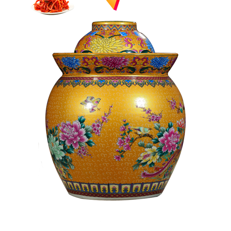 Yumeng Ci Xuan Jingdezhen Ceramic Wine Jar Glass Bottle Pickle Jar Sichuan Egg Pickles Jingdezhen Ceramic Chinese Sealed Jar Model 02 7 catties Pack Free Base