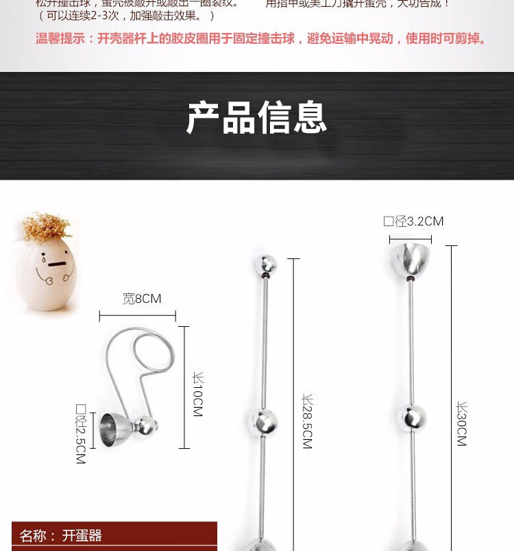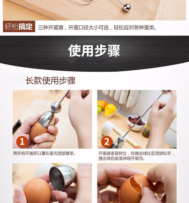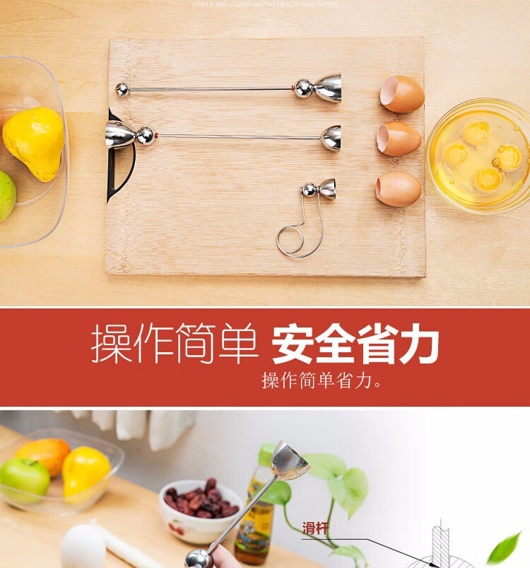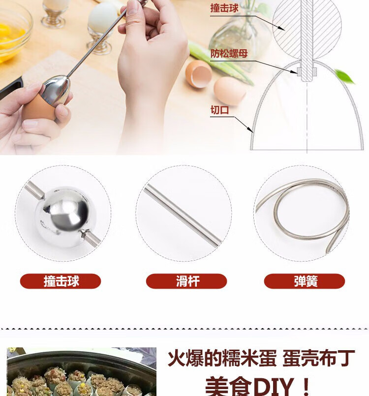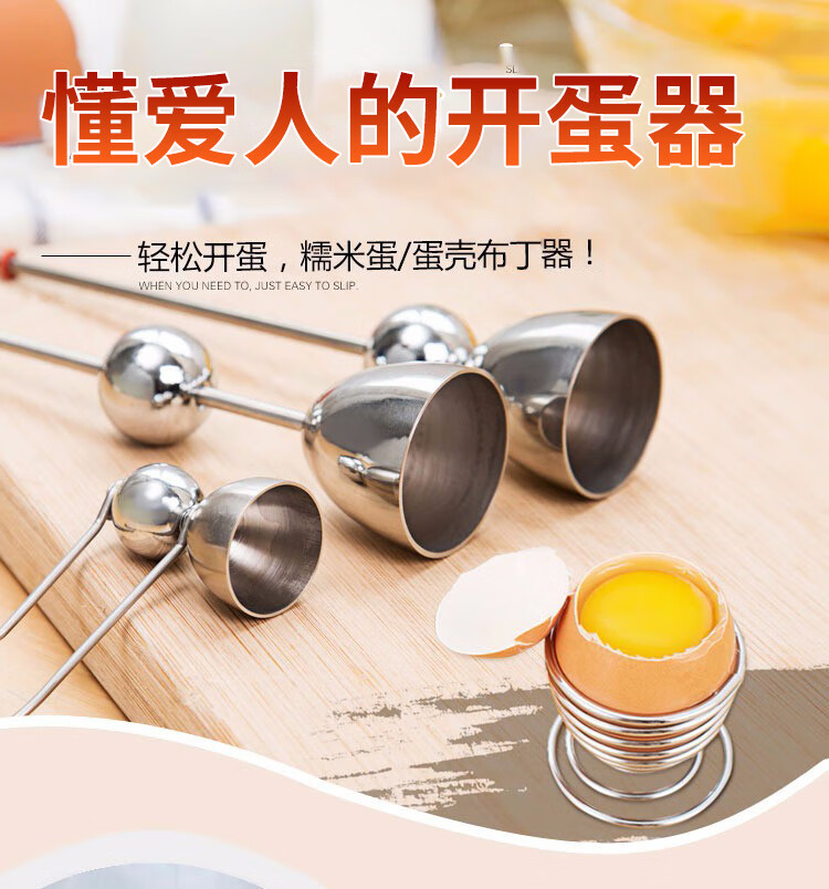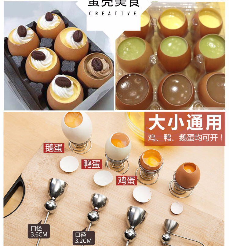 Canzhi stainless steel metering ball egg opener egg shell opener eggshell cutter small diameter glutinous rice egg knife Canzhi double-head model (diameter 32+36mm) with egg tray