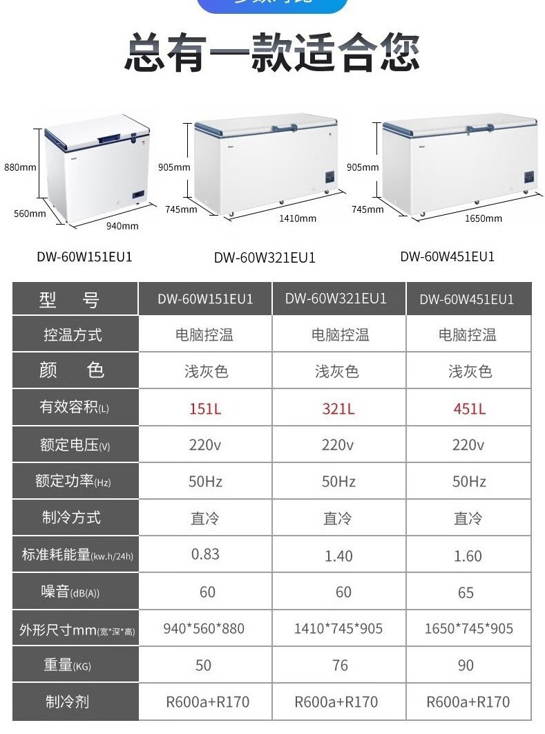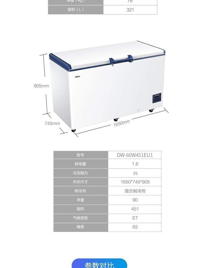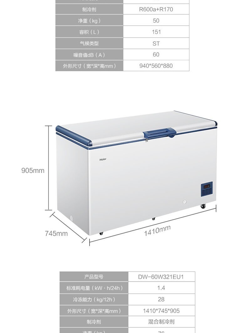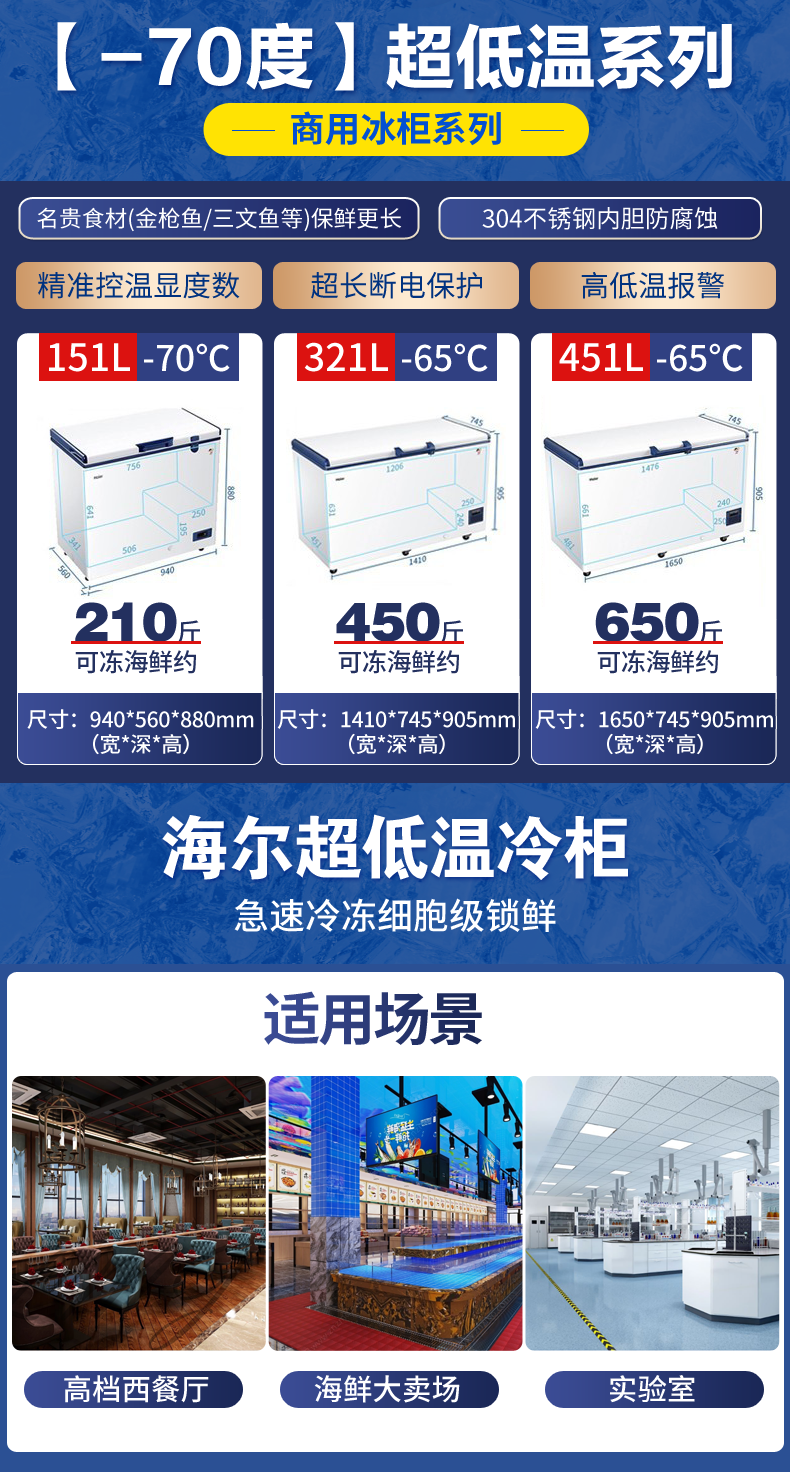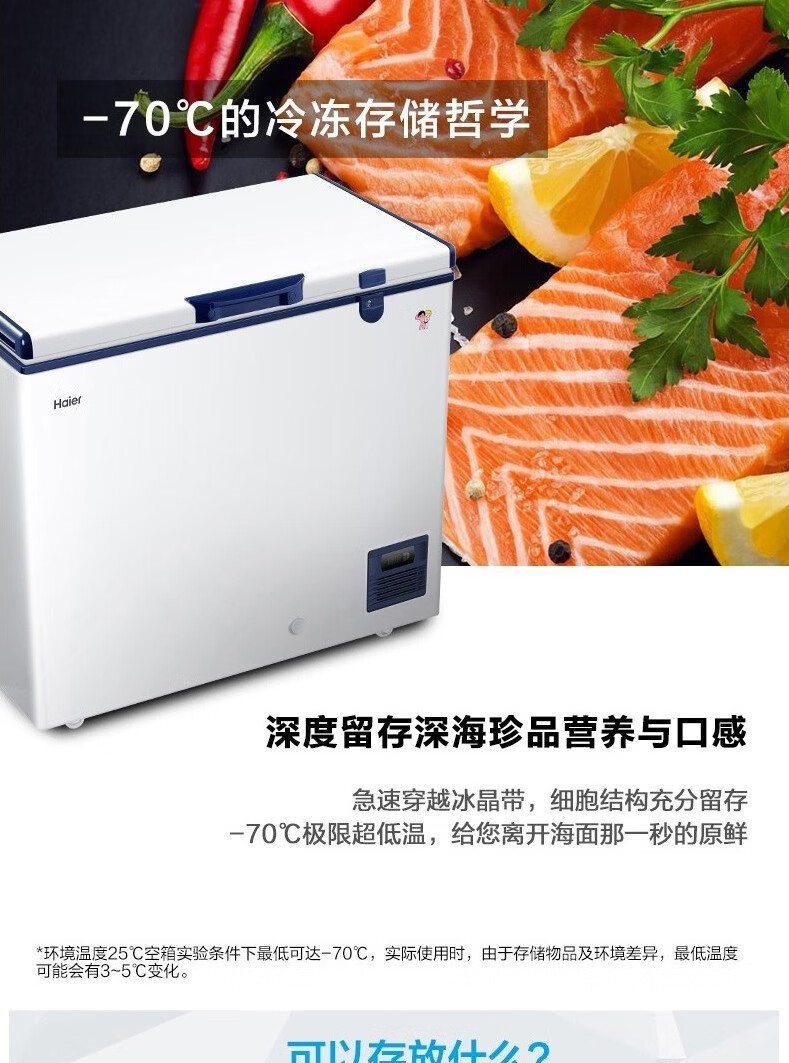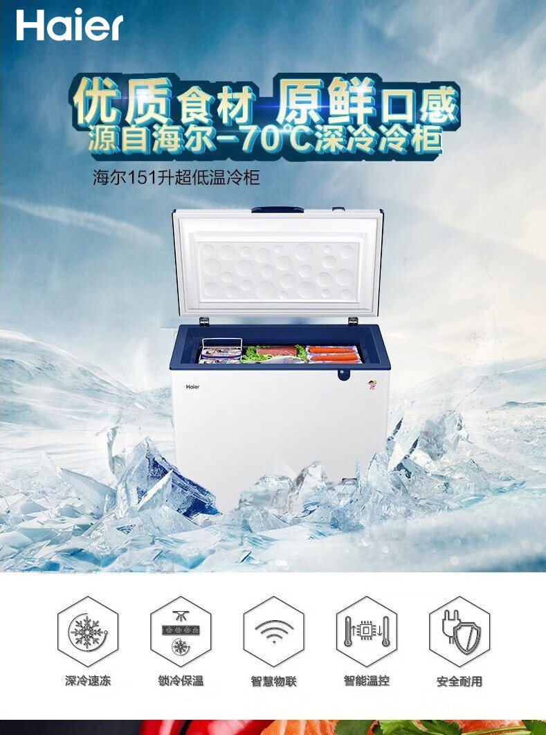 Haier ultra-low temperature freezer -65/70 degrees commercial large-capacity laboratory cryogenic quick-frozen cell-grade seafood cabinet freezer can freeze tuna and salmon DW-60W151EU1丨-70 degrees