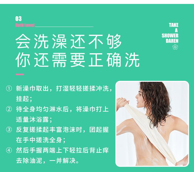 Qingyou Japan imported bath towel women's long pull-back bath towel painless back rub artifact bath towel QYS--008 (packaging pink)