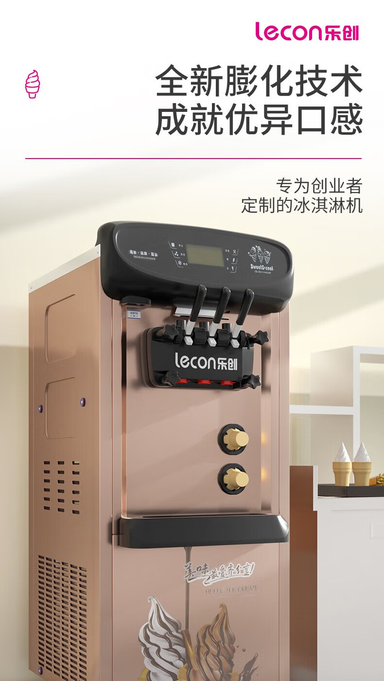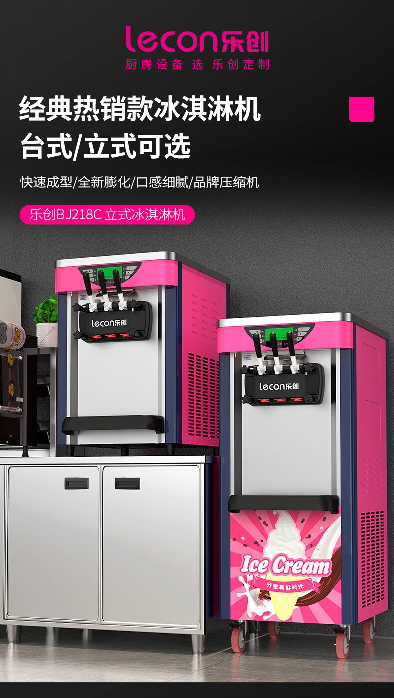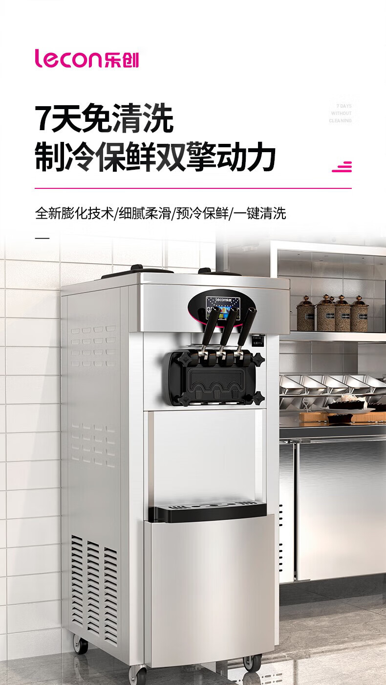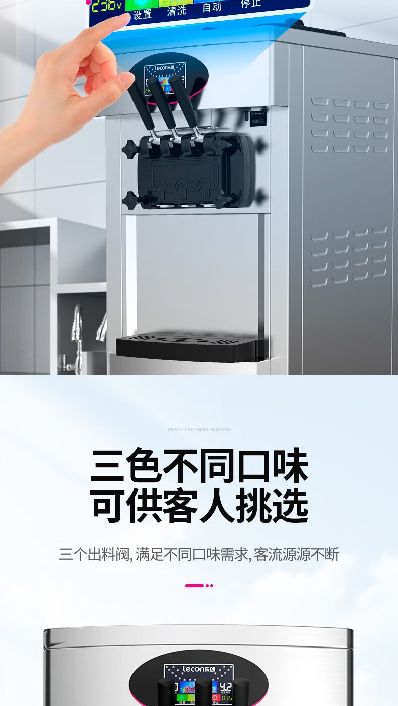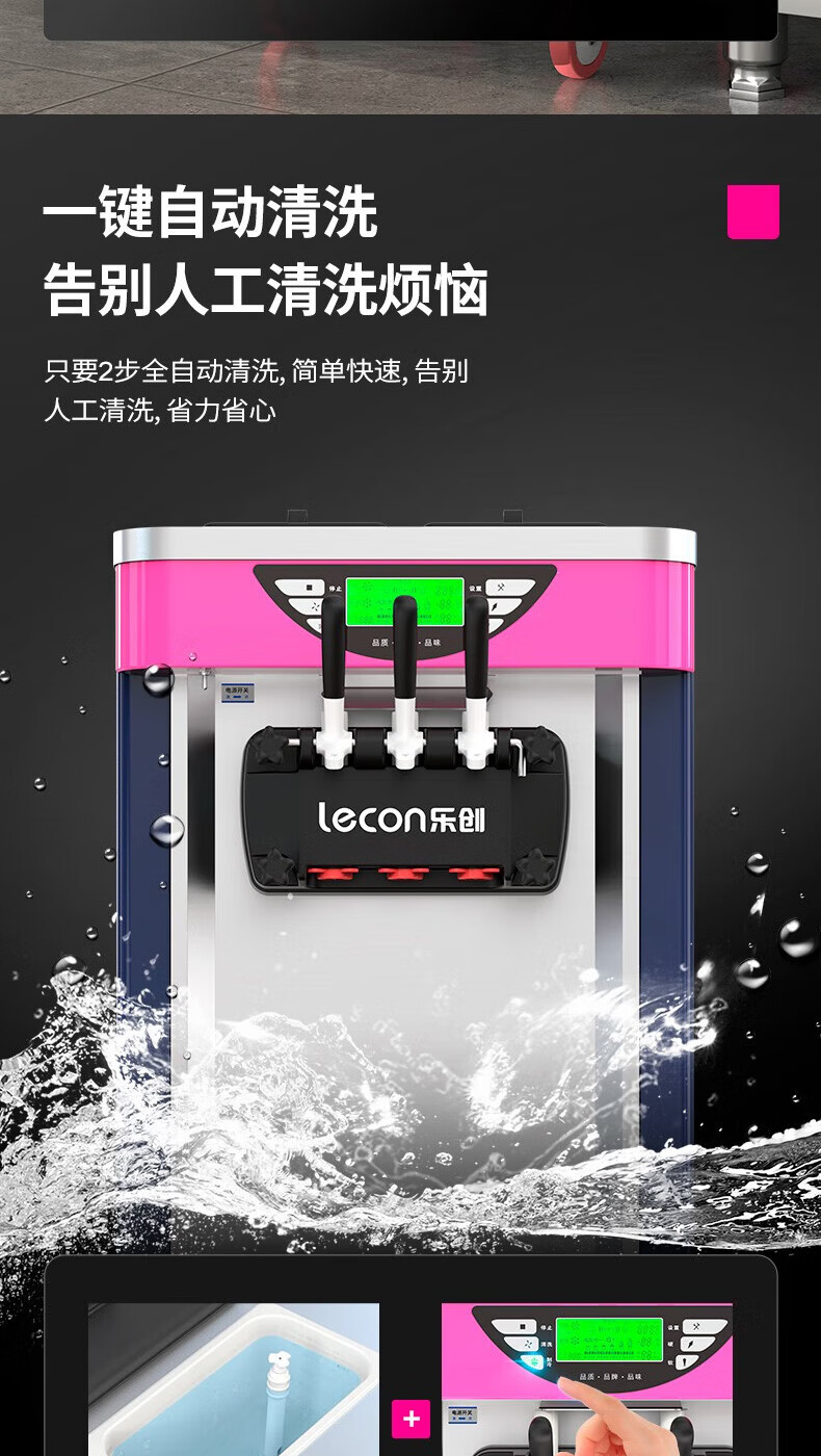 Lecon ice cream machine commercial desktop vertical soft ice cream machine automatic cleaning stainless steel ice cream machine sundae cone machine desktop economical model-21L/H output