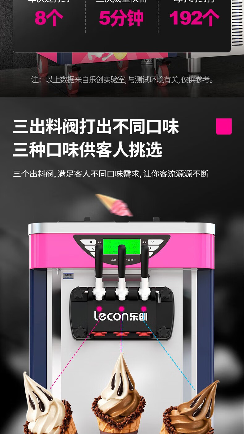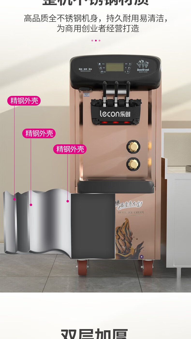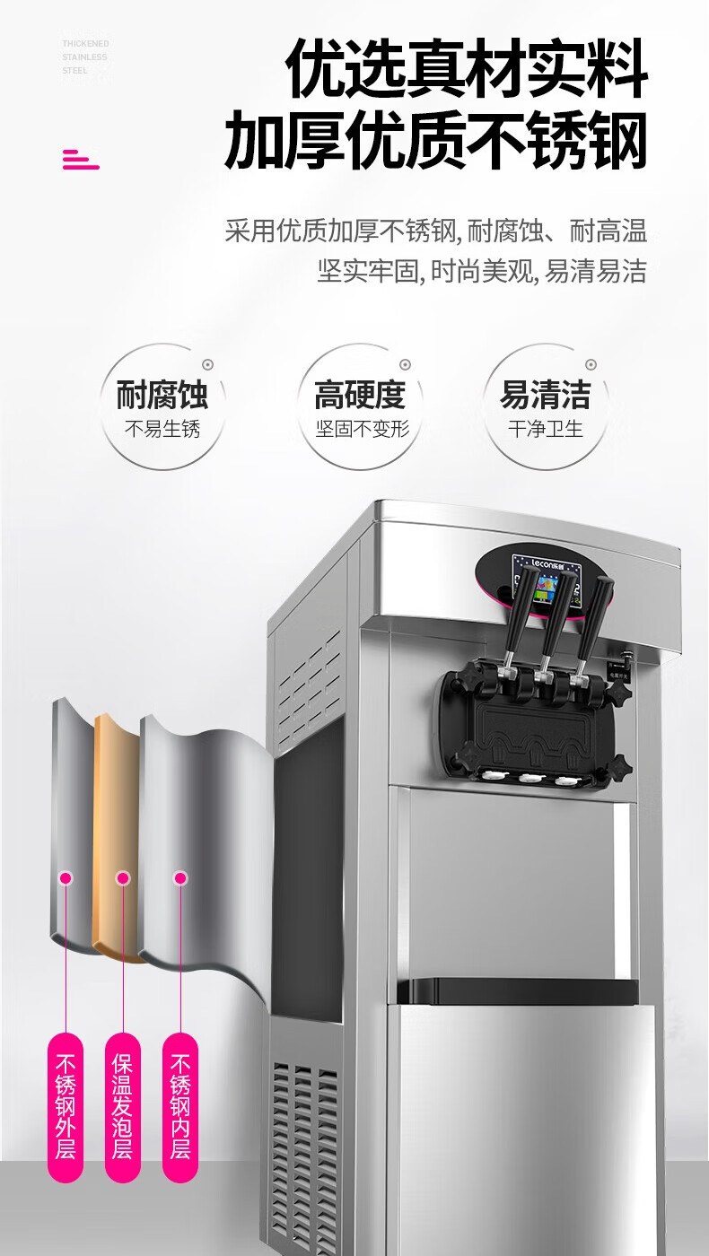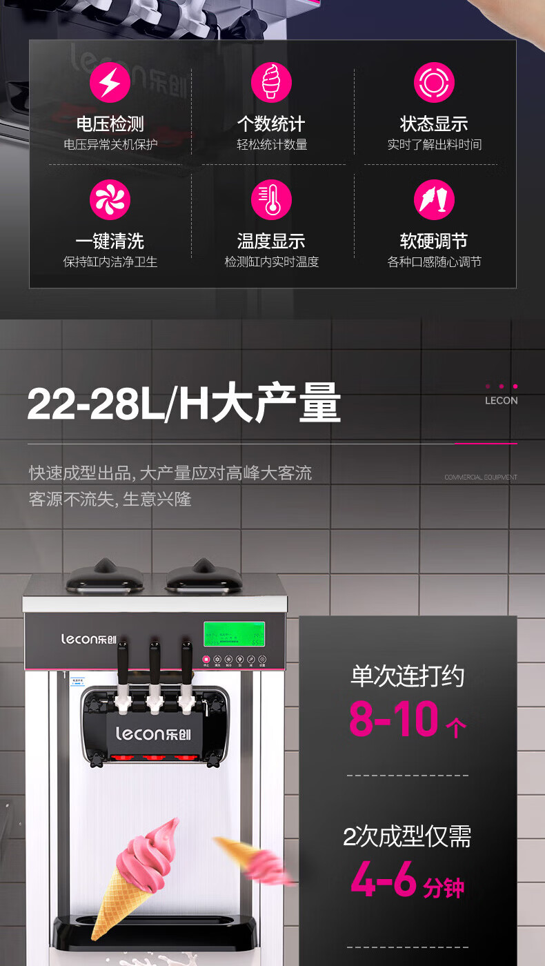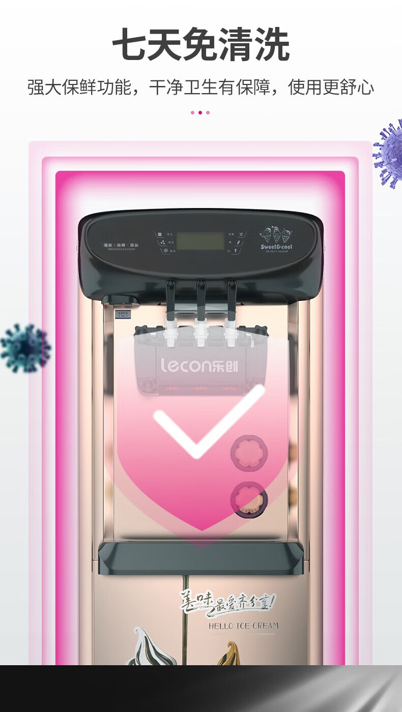Lecon ice cream machine commercial desktop vertical soft ice cream machine automatic cleaning stainless steel ice cream machine sundae cone machine desktop economical model-21L/H output