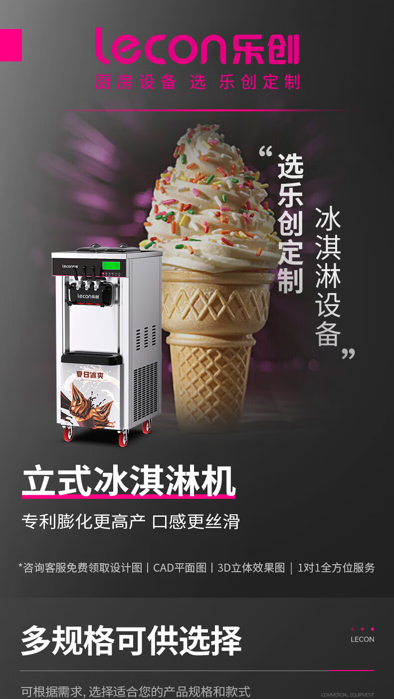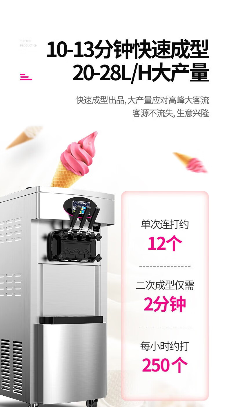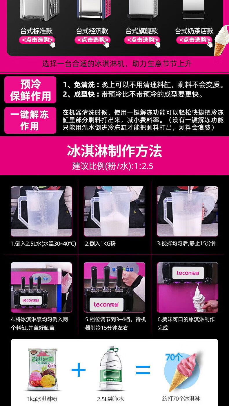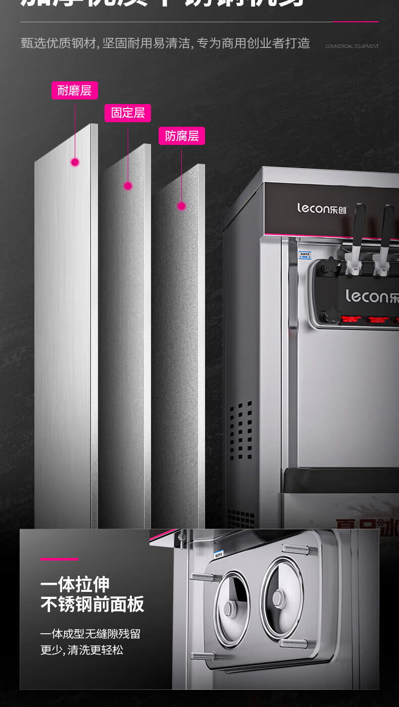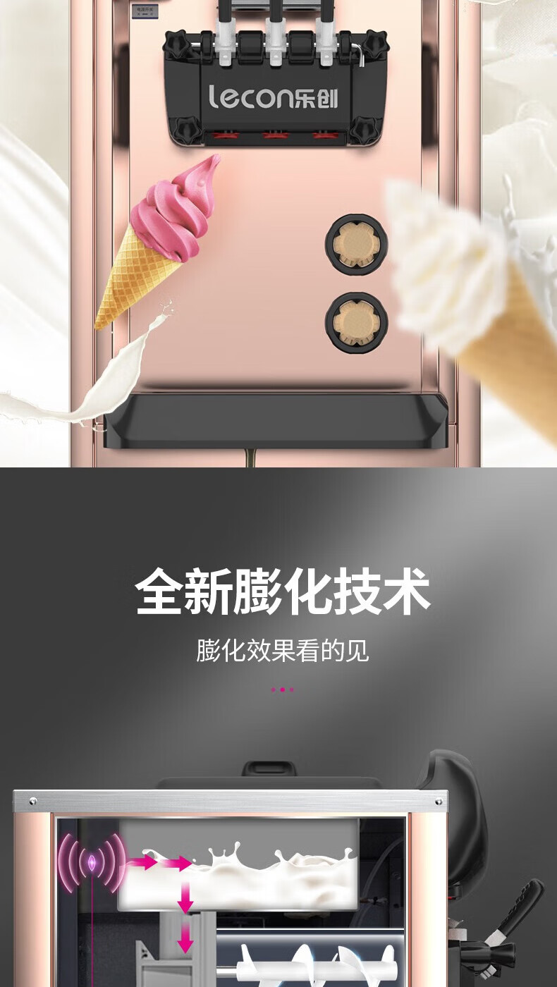 Lecon ice cream machine commercial desktop vertical soft ice cream machine automatic cleaning stainless steel ice cream machine sundae cone machine desktop economical model-21L/H output
