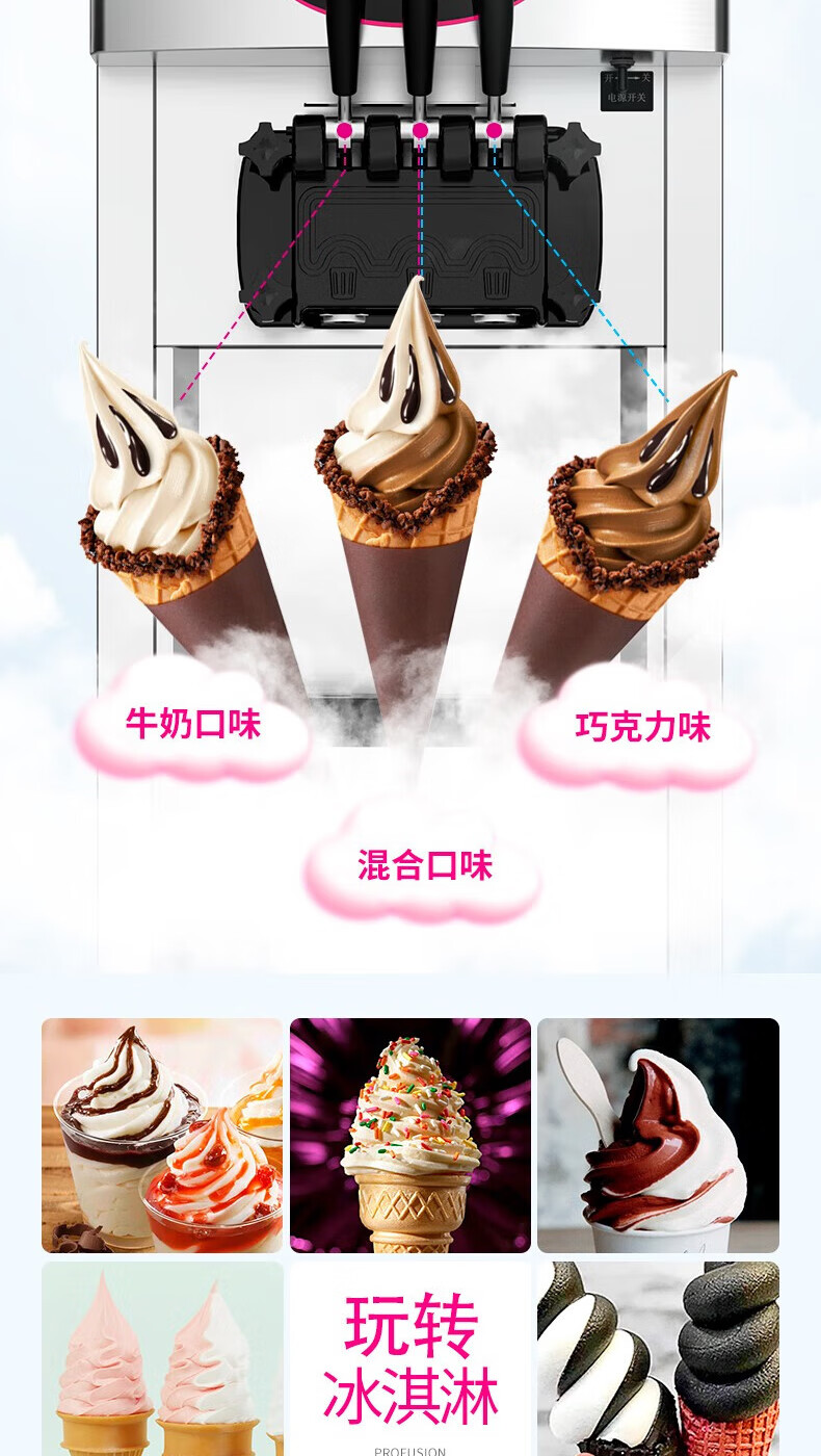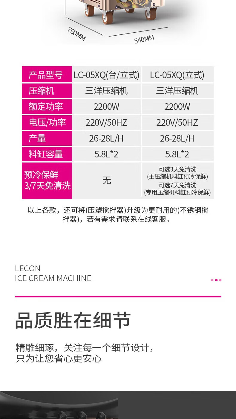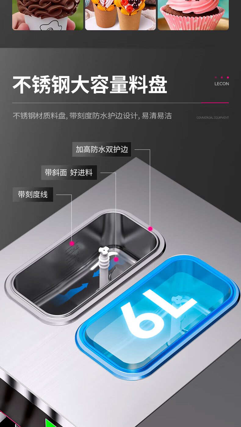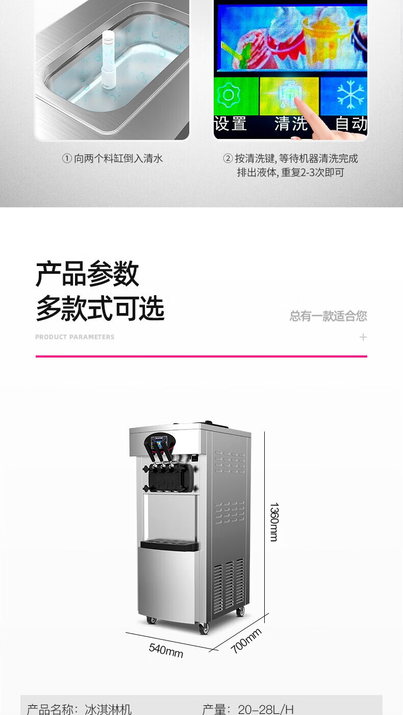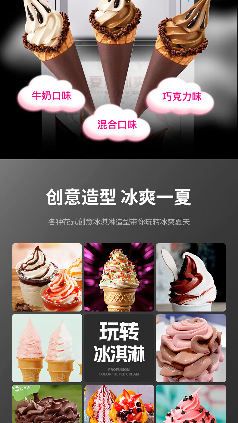 Lecon ice cream machine commercial desktop vertical soft ice cream machine automatic cleaning stainless steel ice cream machine sundae cone machine desktop economical model-21L/H output