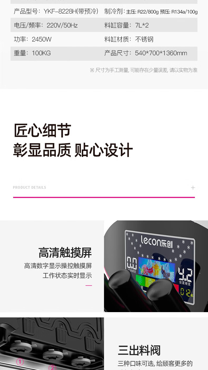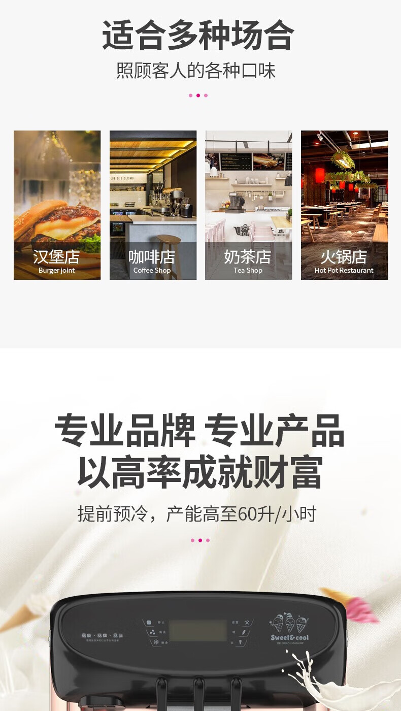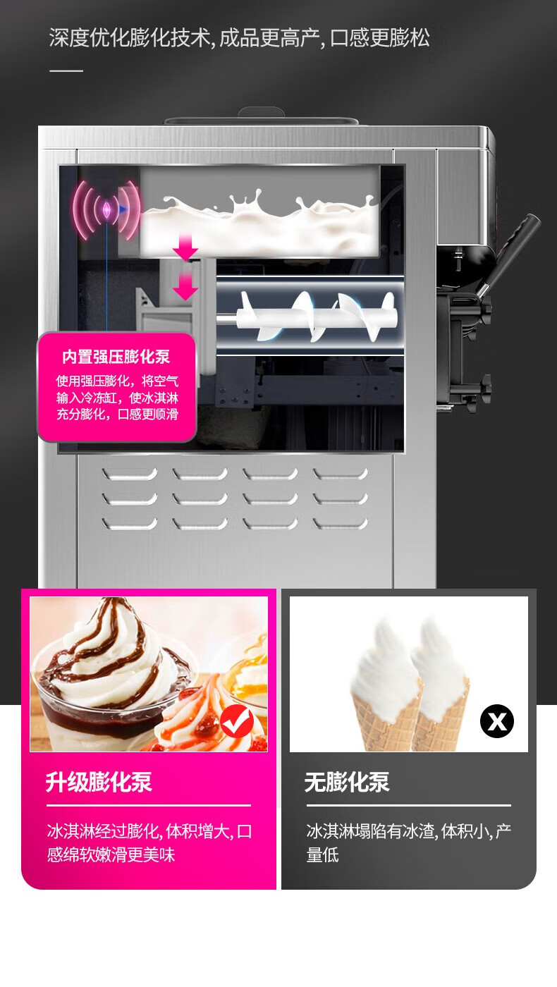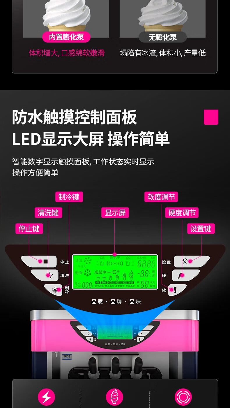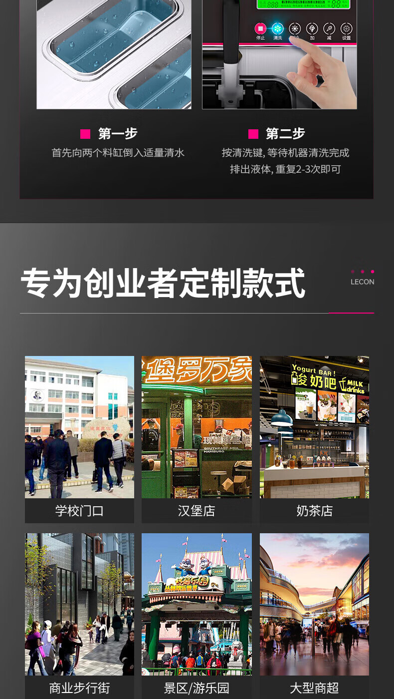 Lecon ice cream machine commercial desktop vertical soft ice cream machine automatic cleaning stainless steel ice cream machine sundae cone machine desktop economical model-21L/H output