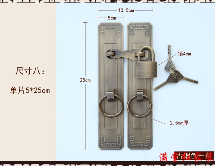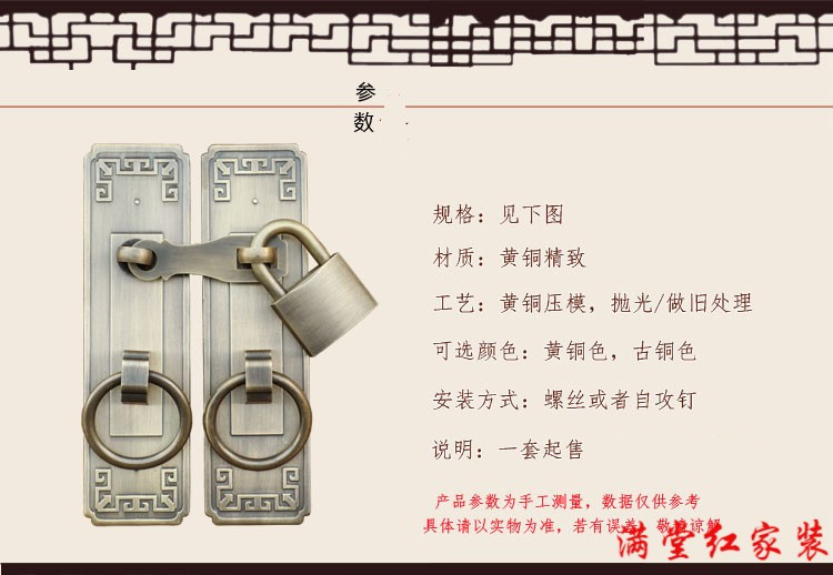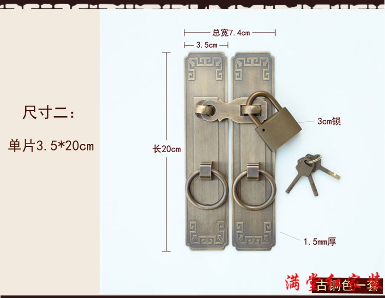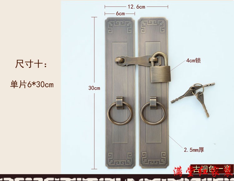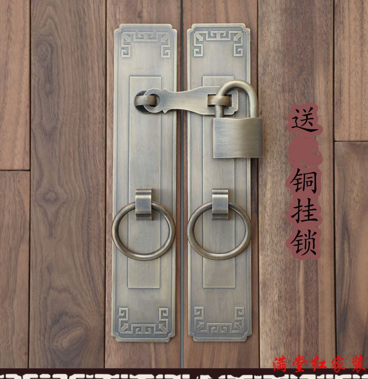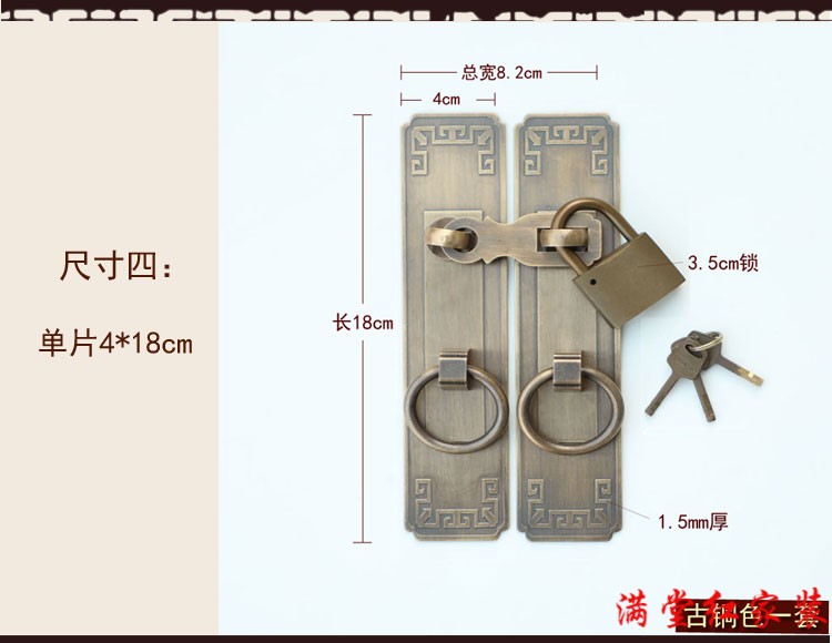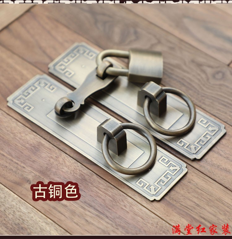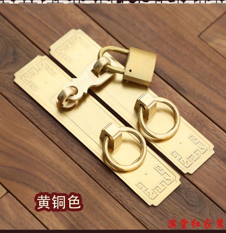 Jingsuo lock latch Chinese style antique copper door bolt buckle cabinet door handle door handle copper old-fashioned wooden door padlock 6*25 brass color (set)