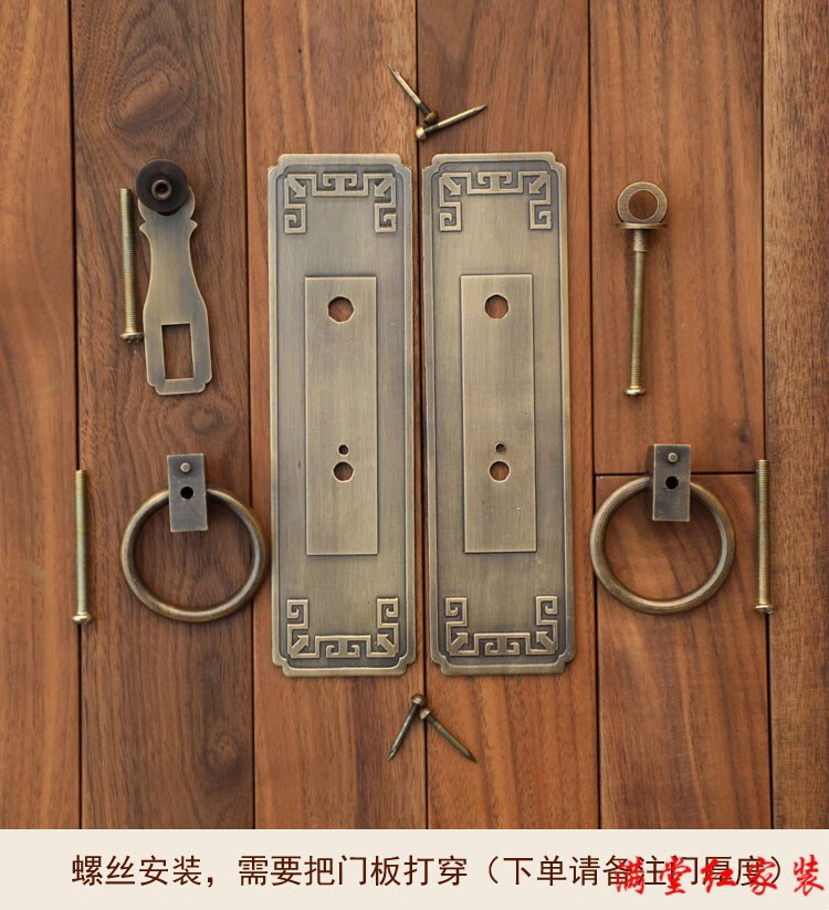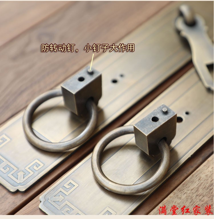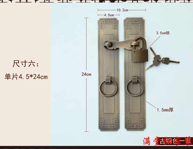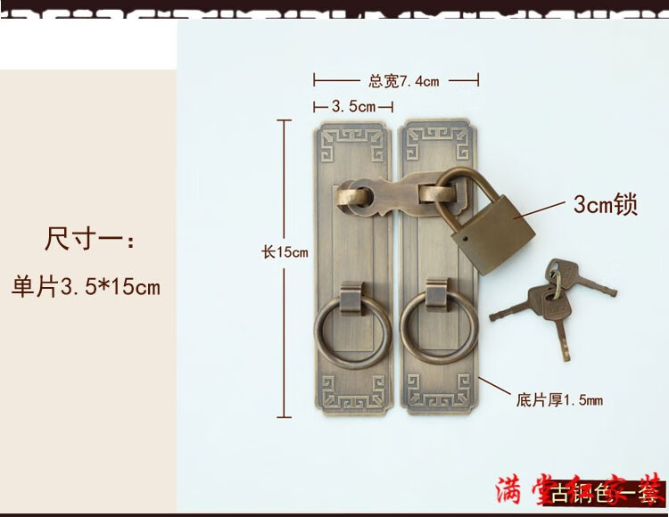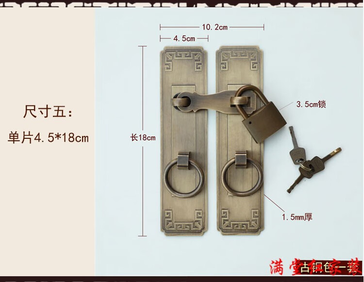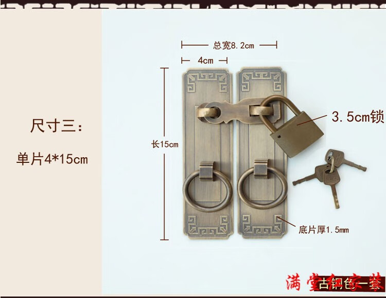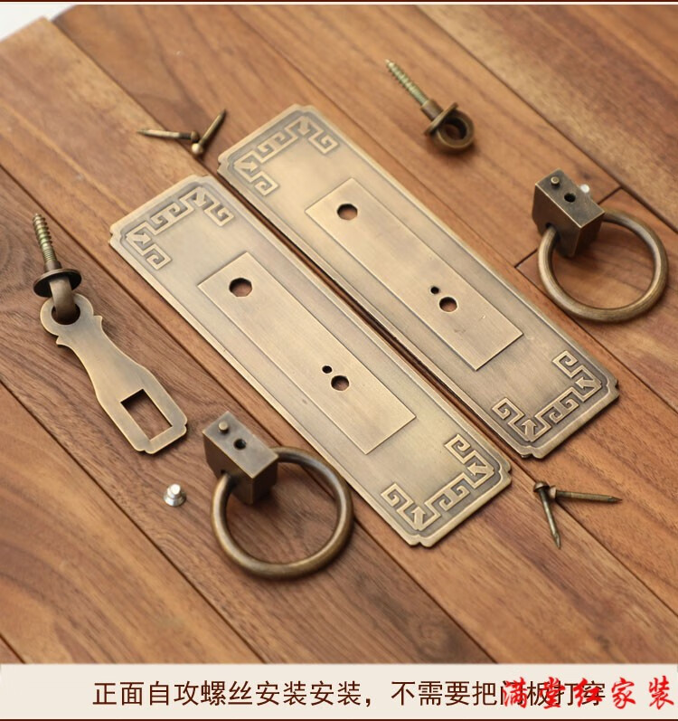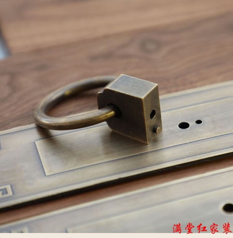 Jingsuo lock latch Chinese style antique copper door bolt buckle cabinet door handle door handle copper old-fashioned wooden door padlock 6*25 brass color (set)