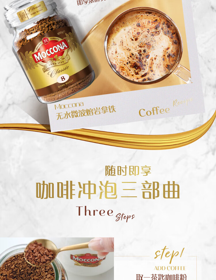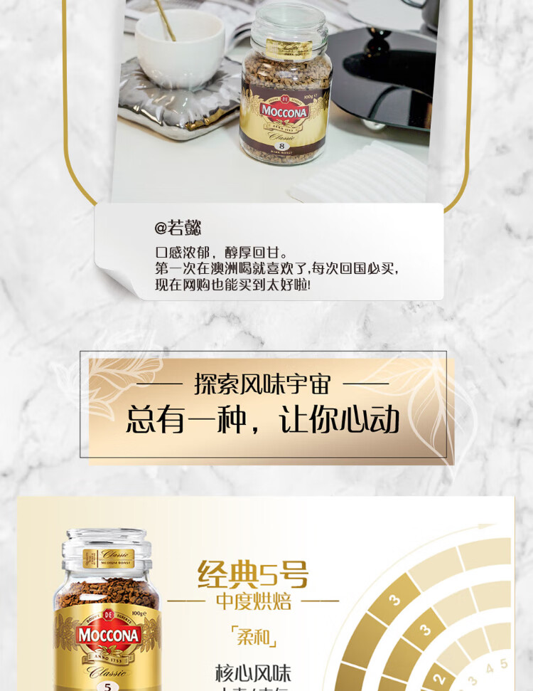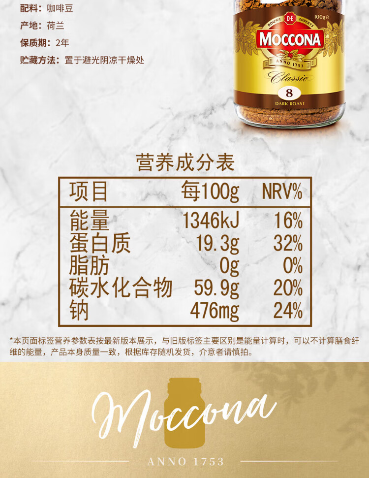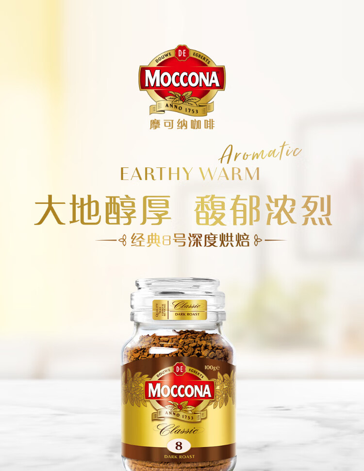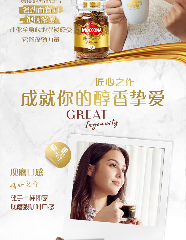 Moccona Classic No. 8 freeze-dried instant black coffee 200g bottled dark roasted imported latte American cold brew 0 fat 0 sugar