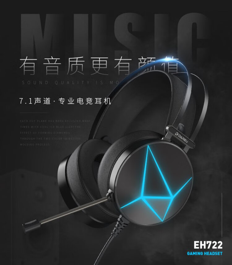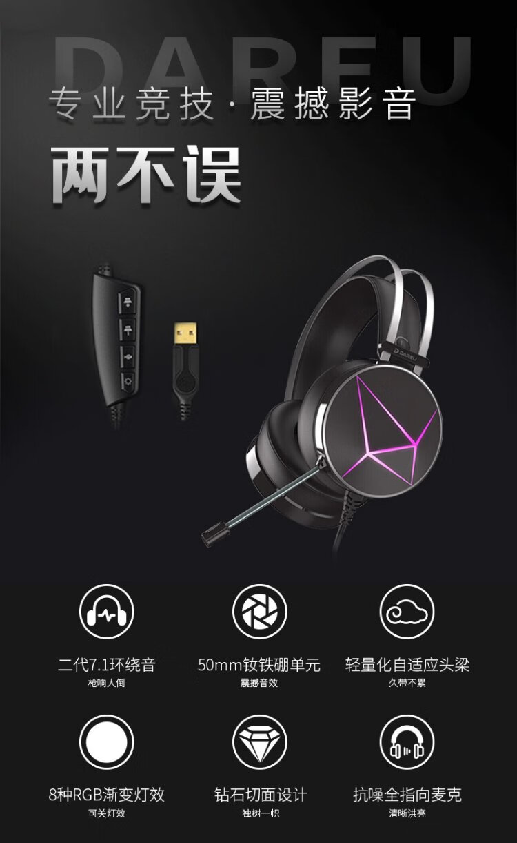 Dareu EH722RGB Gaming Headset Delta Mobile Listening 7.1 Channel Headset Desktop Gaming Headset Black Myth Wukong Symphony Black