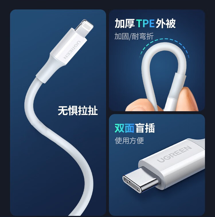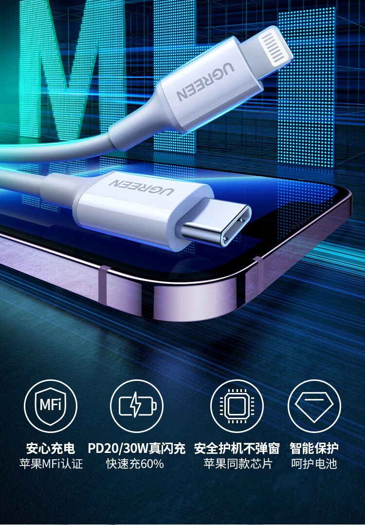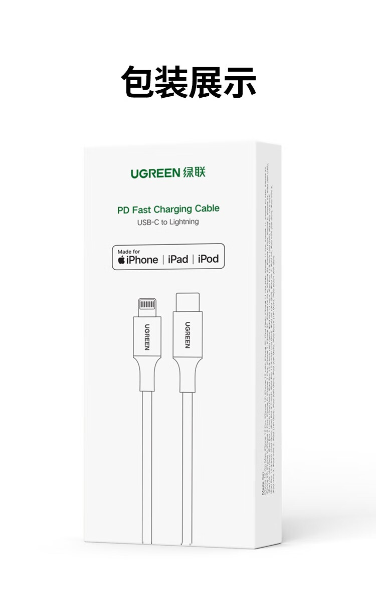 Greenlink MFi certification without pop-up window Apple PD fast charging data cable Type-C to lighting MFI protocol fast charging data cable suitable for Apple iPhone14/13 mobile phone TPE plastic case Yunduo White/Apple 14-8 all series fast charging 1 meter