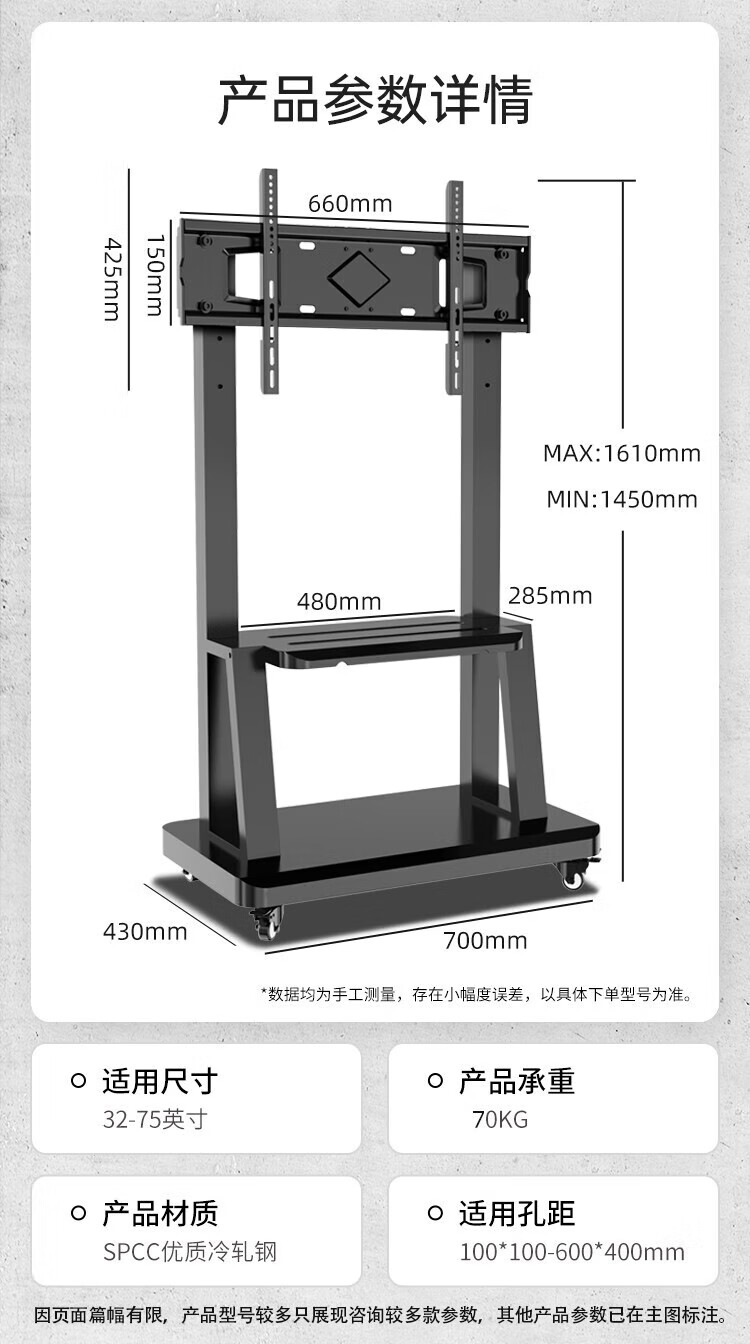 Beishi Mobile TV Stand Floor Stand Video Conferencing TV Stand Cart Suitable for Hisense Sony Skyworth Coolai TCL and other TV Stands Vertical Advertising Stand 55-100 inches Widened Base Stable Upgrade