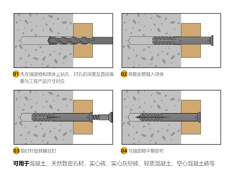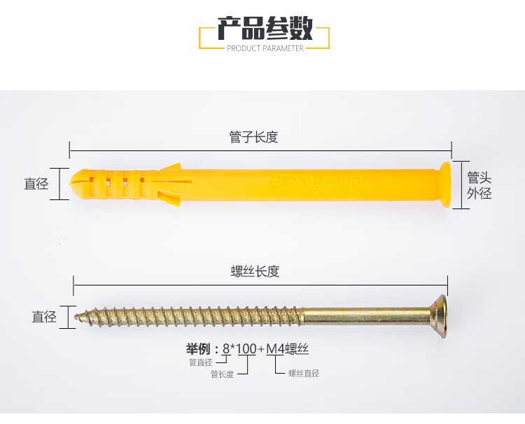 Plastic expansion tube small yellow croaker expansion screw expansion bolt lengthened expansion plug rubber plug with self-tapping nails 6mm8mm10 M6*40+ stainless steel nails 20 sets