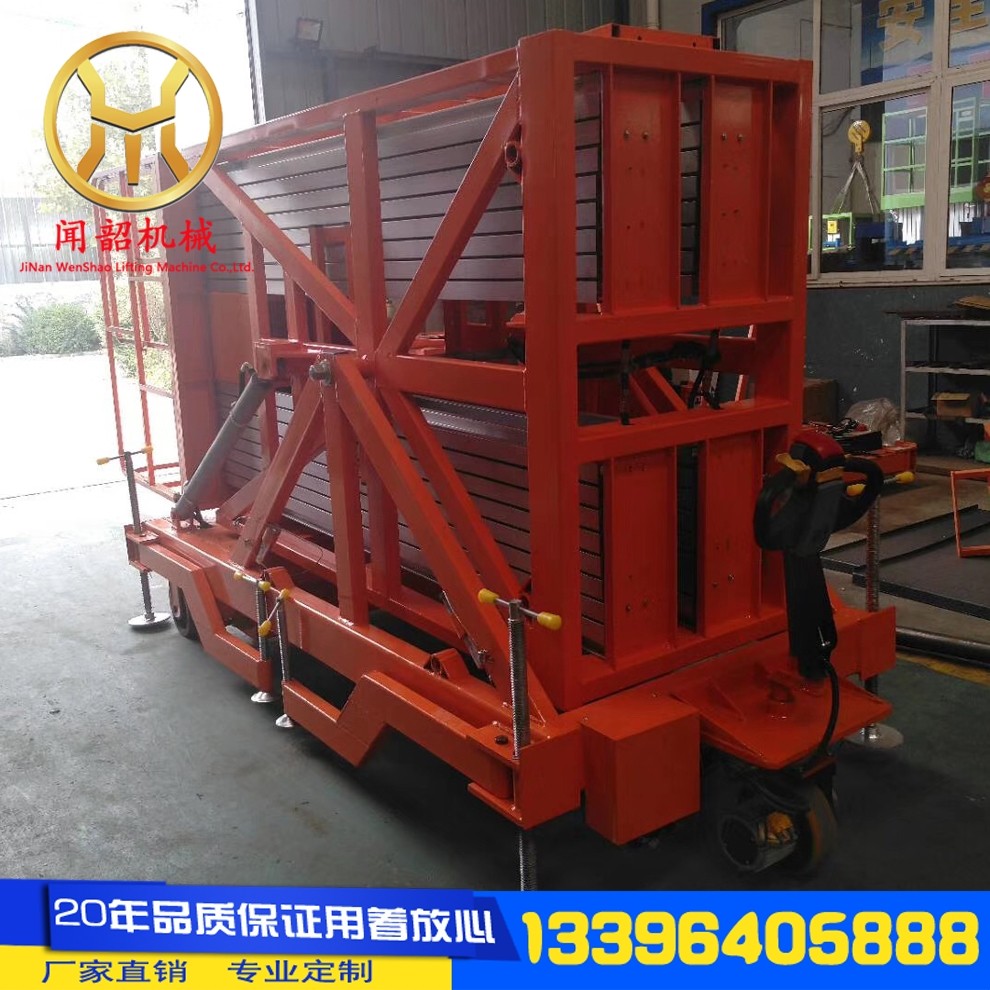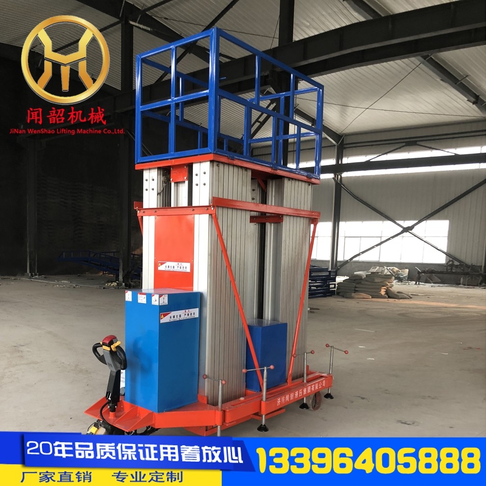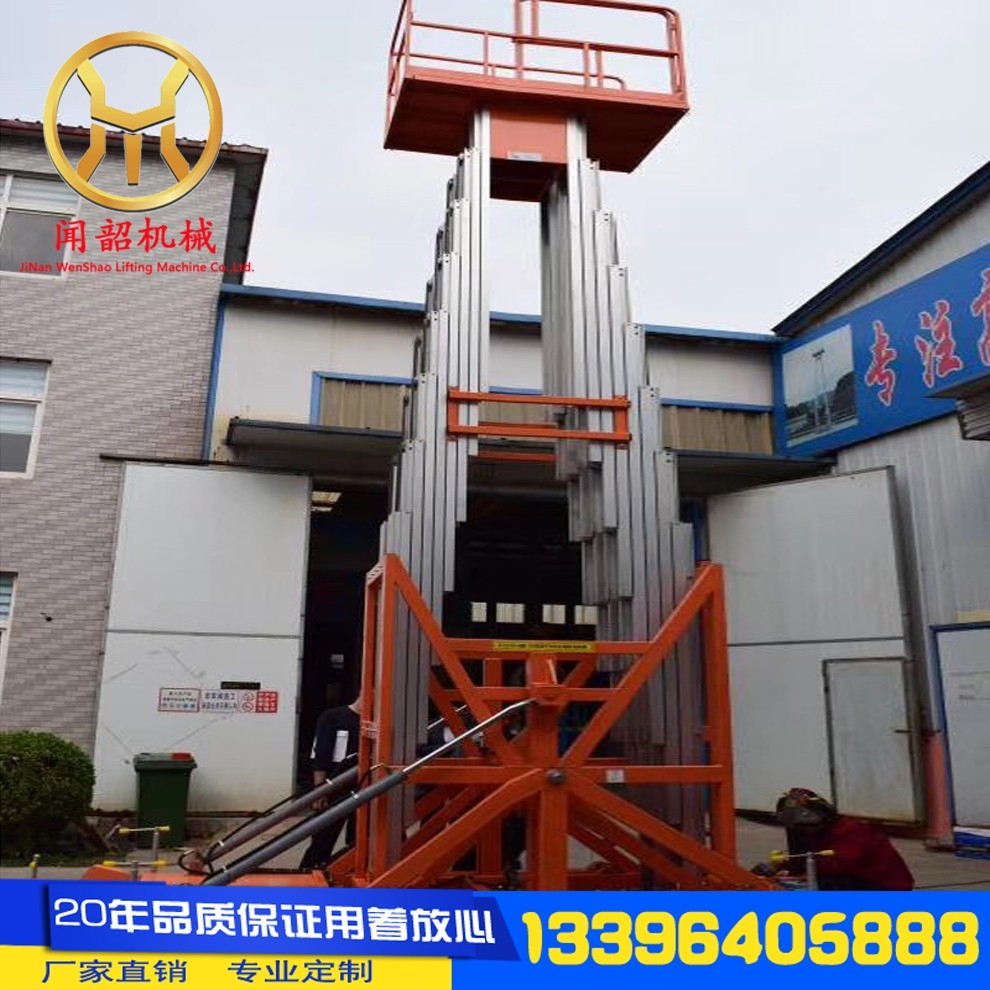 Xinwenshao aluminum alloy lift aerial work platform mobile electric single column double column small hydraulic lifting platform six columns rise 26 meters and load 200KG